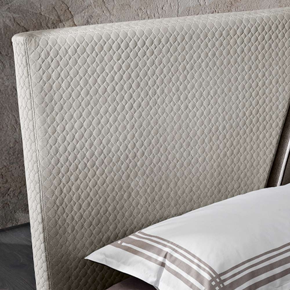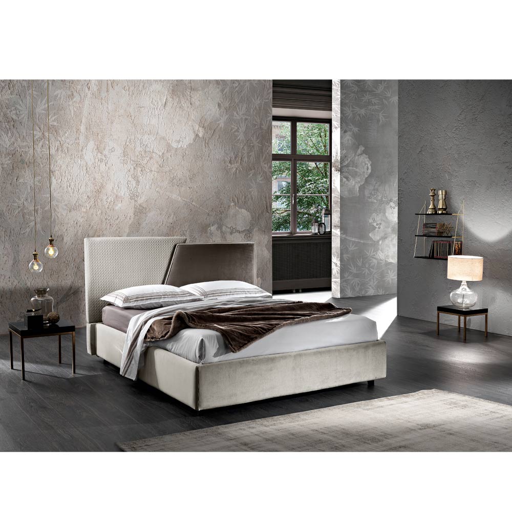 Modern double bed with two fabrics headboard, made in Italy design.