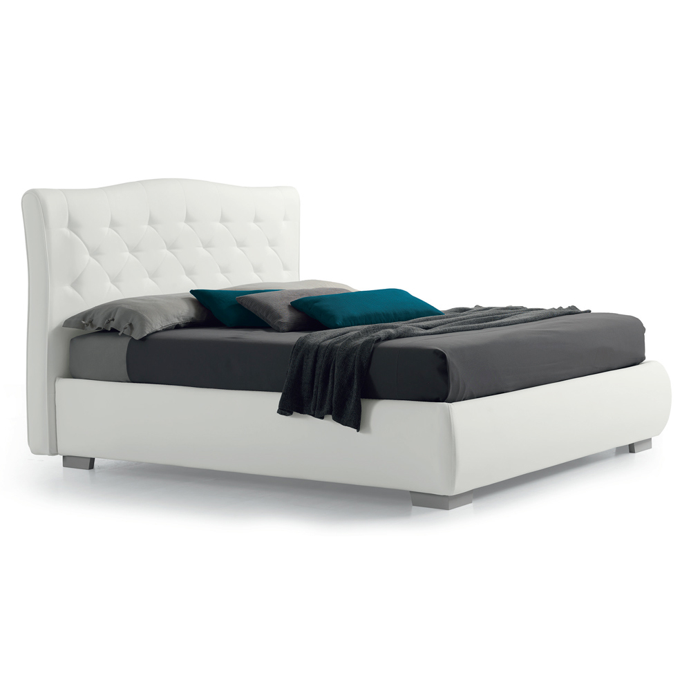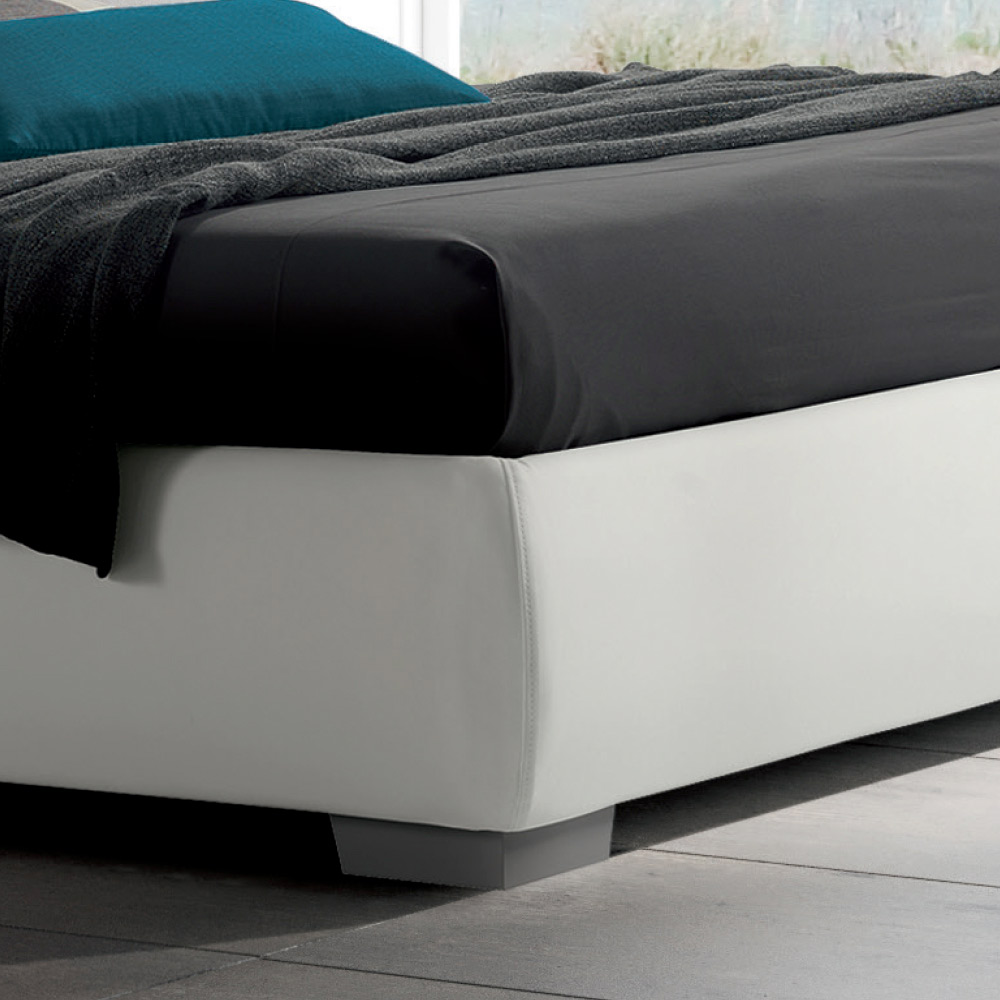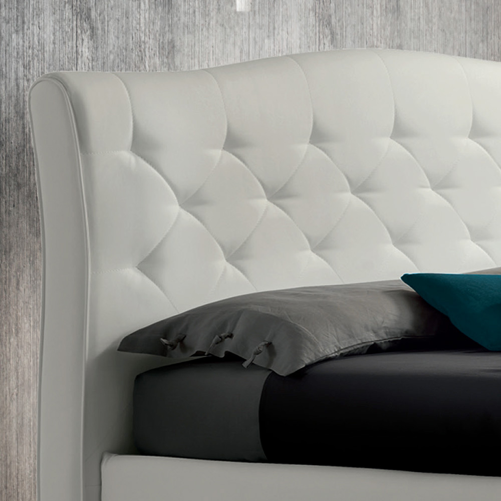 Double bed with storage box and quilted headboard in eco-leather, made in Italy.
