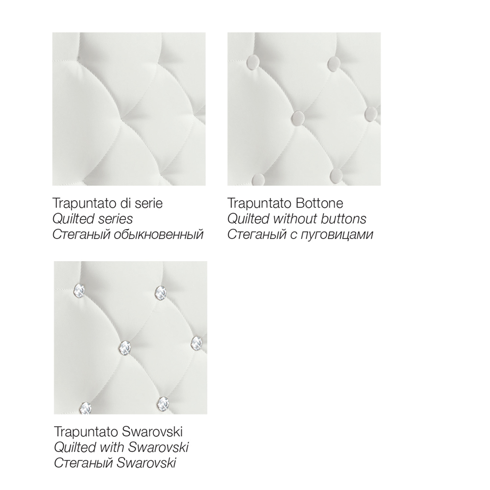 On request it is possible to request the insert in the quilting of buttons or Swarovski crystals .