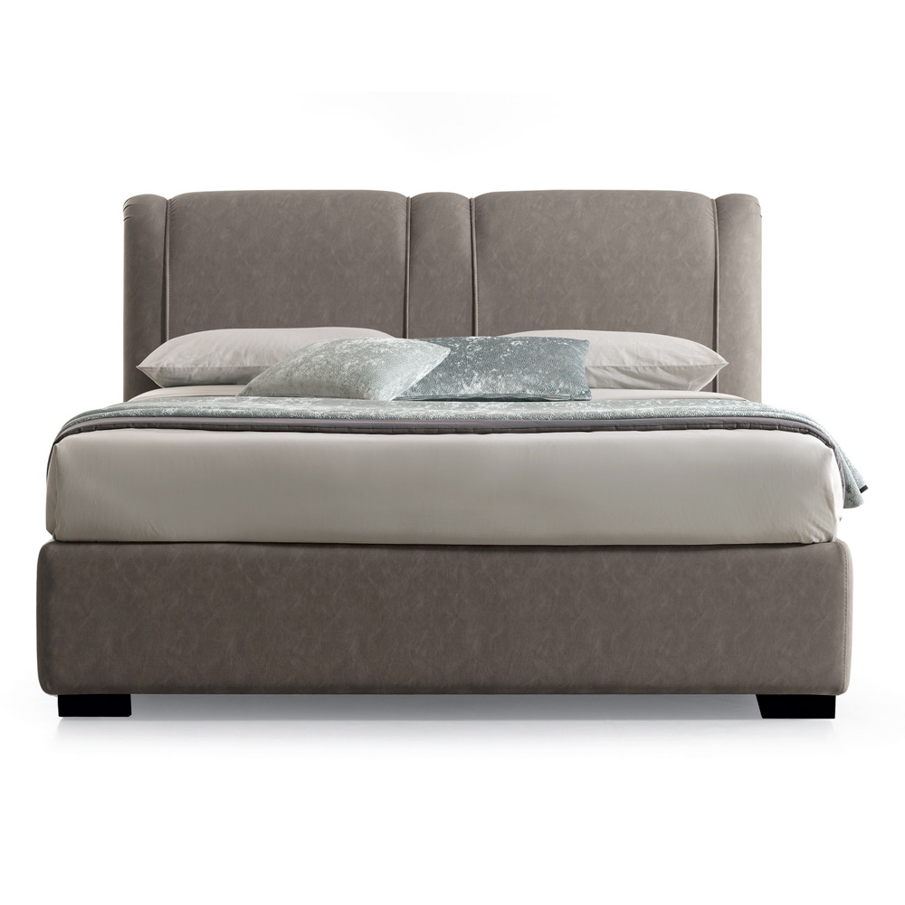Design bed with storage box covered in fireproof leather, made in Italy.