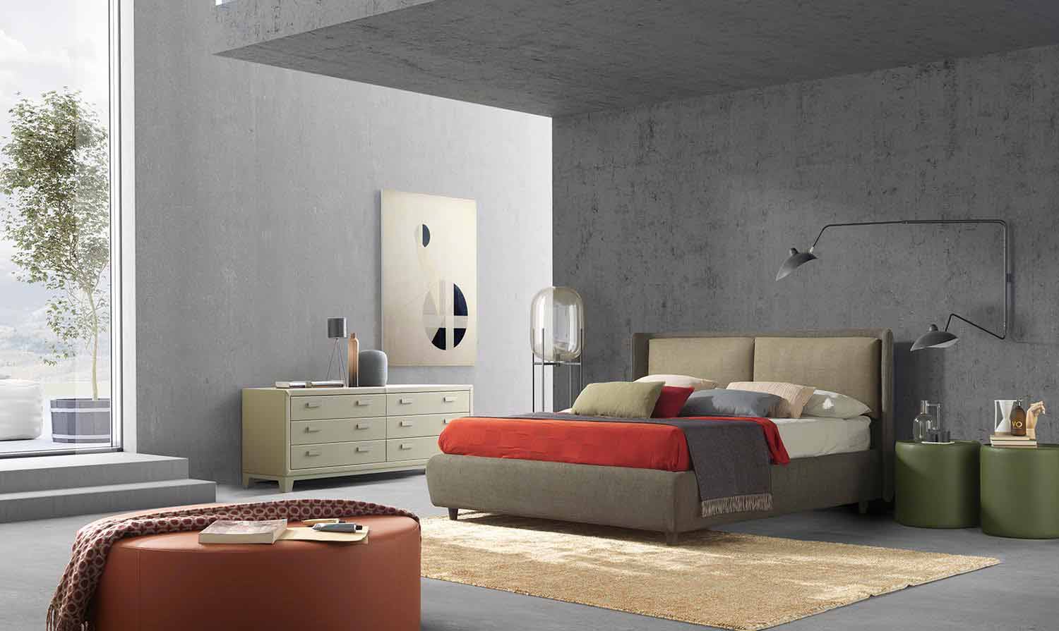 The Kate double bed is characterized by a modern design. The handcrafted workmanship of the visible stitching in the headboard is a valuable detail, capable of recreating a glamorous and particular look.