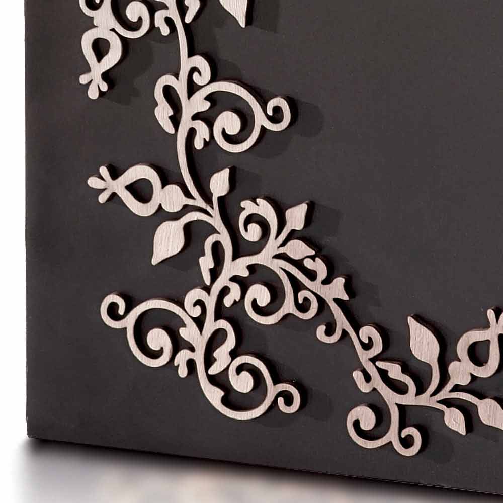 Dimensions: Material:- Laser-cut shaped lacquered wood with decorative wood application