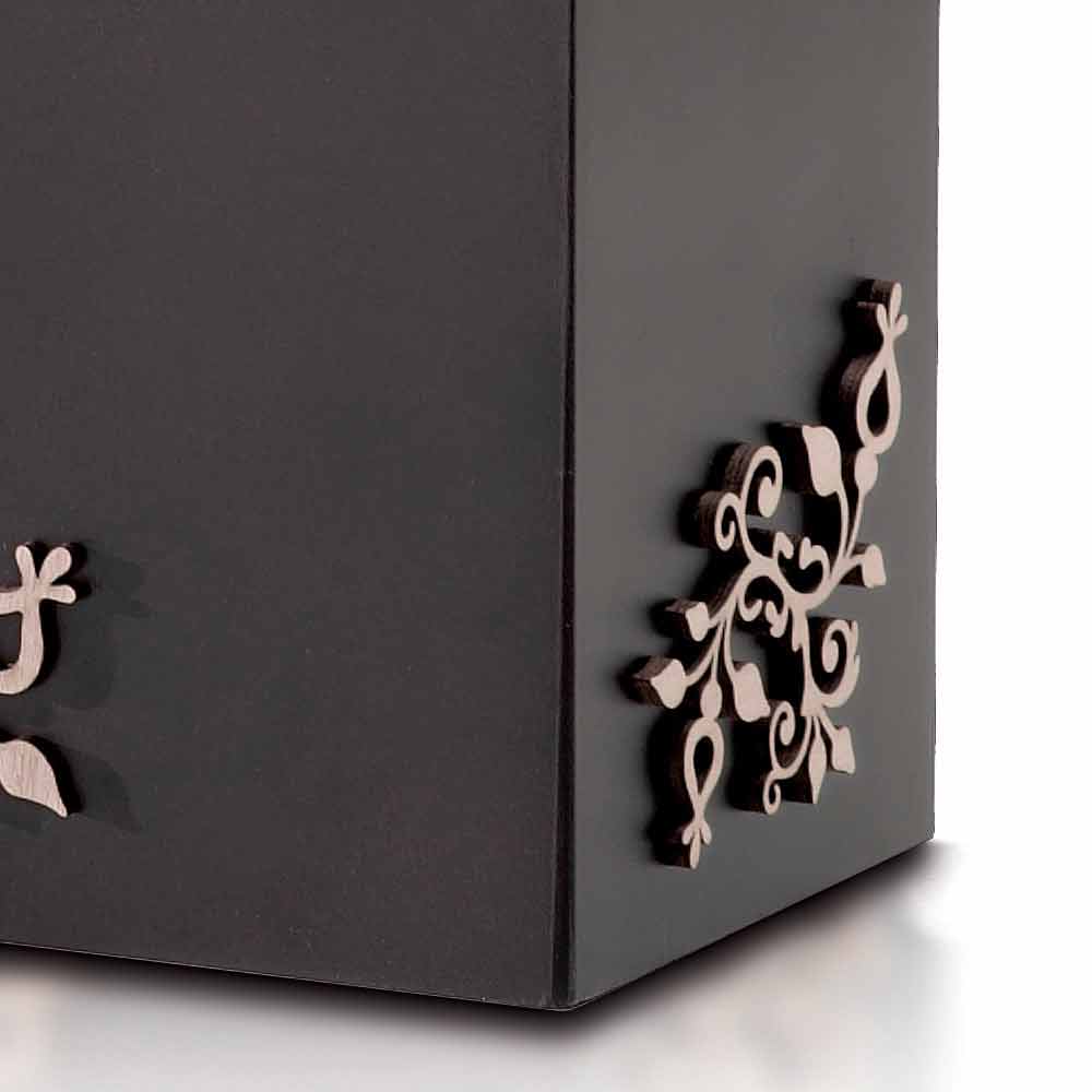 Umbrella stand in dark or white wood with elegant laser-cut contrasting decorations, modern rectangular floor design and made in Italy.