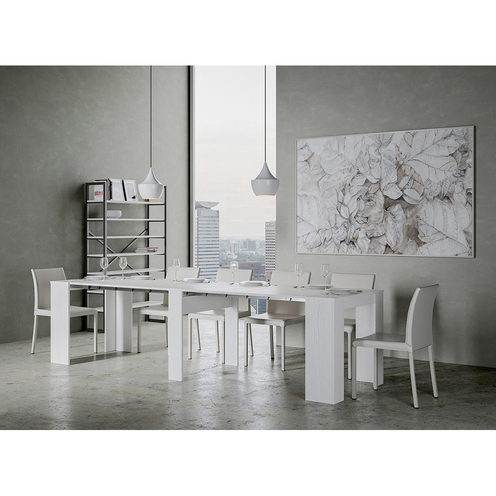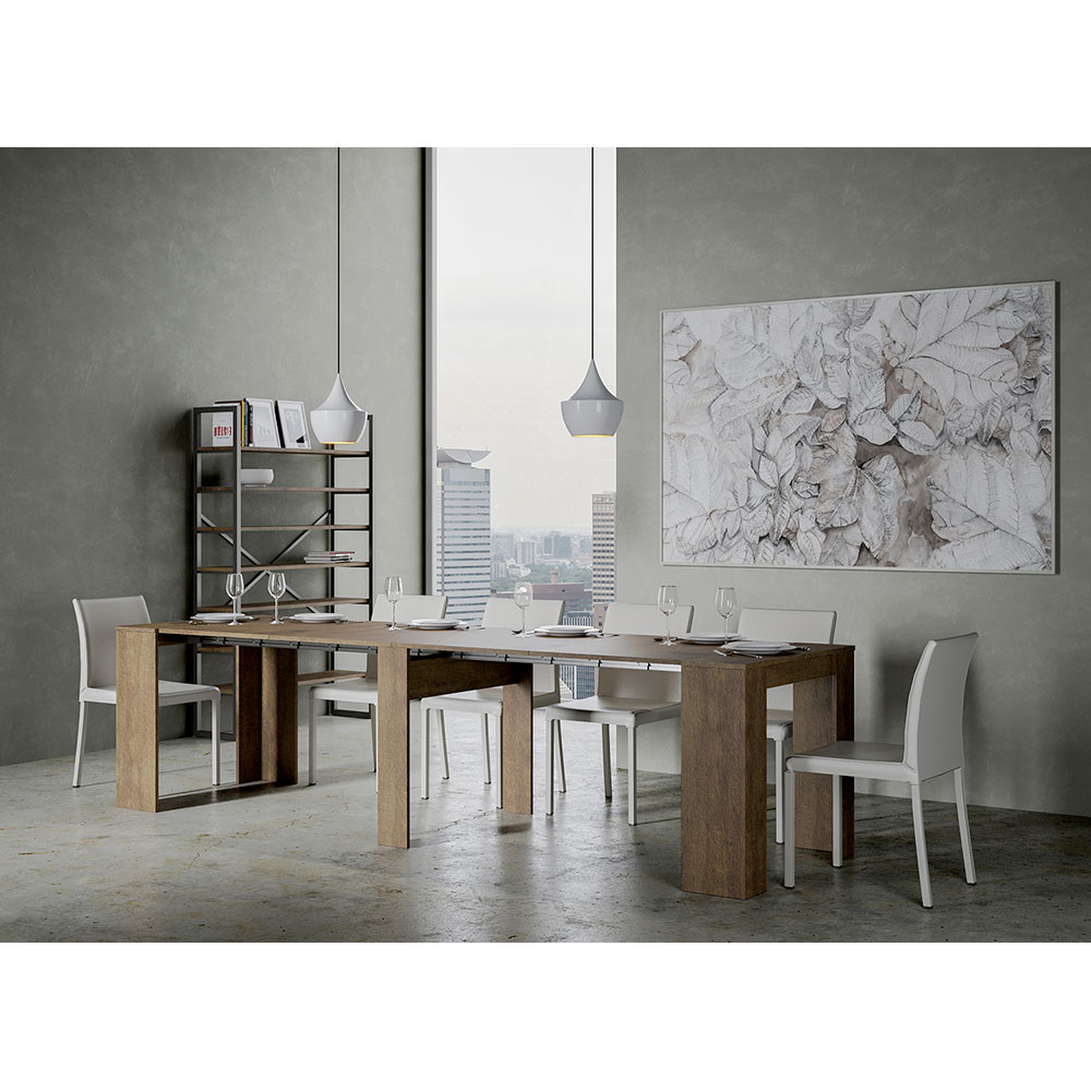 His functional design includes interior extensions, a detail that enhances practicality without sacrificing style: in just a few movements, the console table transforms from an elegant storage unit to a spacious table, ready to welcome guests for memorable dinners or to serve as a large work surface.