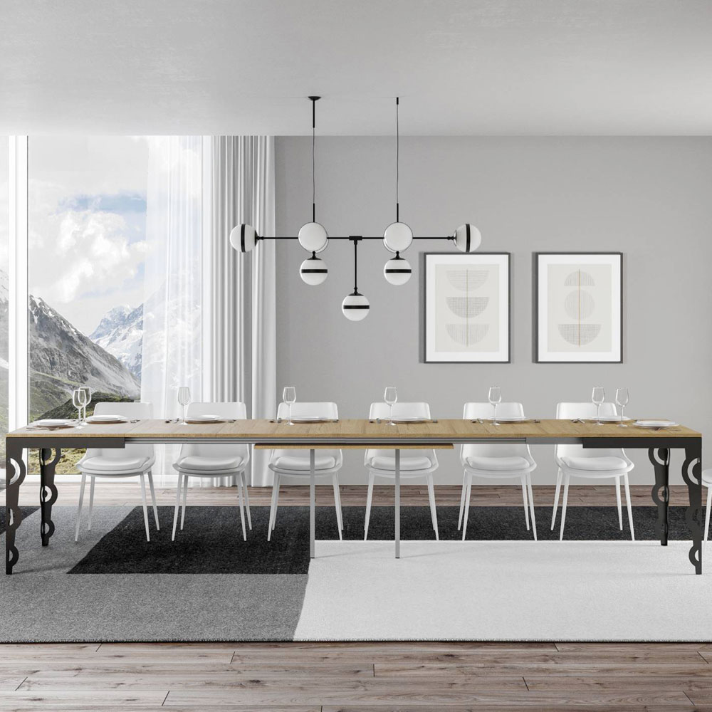 The wood topĆØ a classic that never goes out of style, offering a durable surface ready to accommodate any type of event, from an intimate dinner to a large banquet. The ability to extend the table makes it incredibly versatile; it adapts easily to both small and large spaces, making it ideal for any type of home.