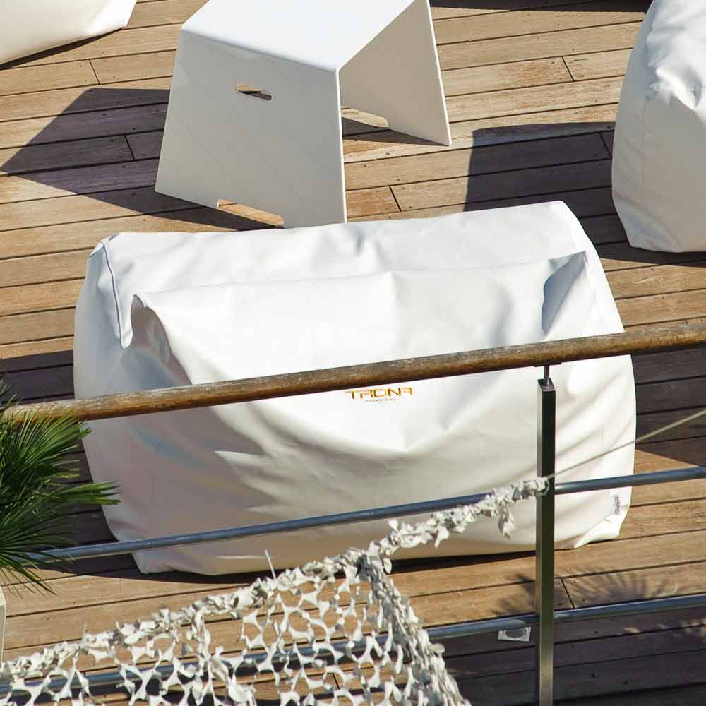 The poolside sofa Cloud has a comfortable seat which perfectly fits with your body and it is covered with soft eco-friendly nautica faux leather. This kind of coating is certified for outdoors and it is stain-resistant, anti-humidity, removable, easily washable, water-resistant and fireproof. It is completely cutted and hand-sewn in Italy.