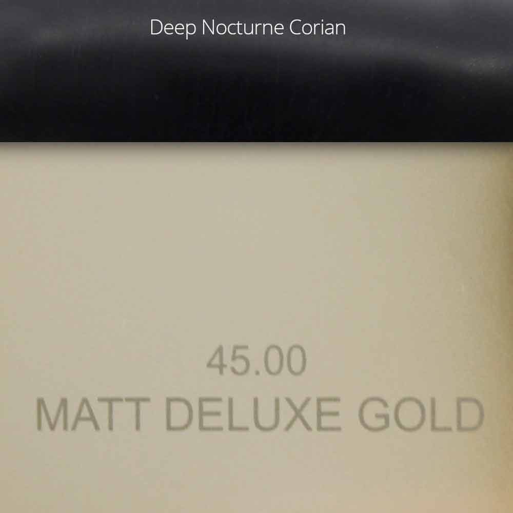 - Matt Deluxe Gold + Deep Nocturne Corian®: matte 14 antique gold finish with black DuPont ⢠Corian® elements.