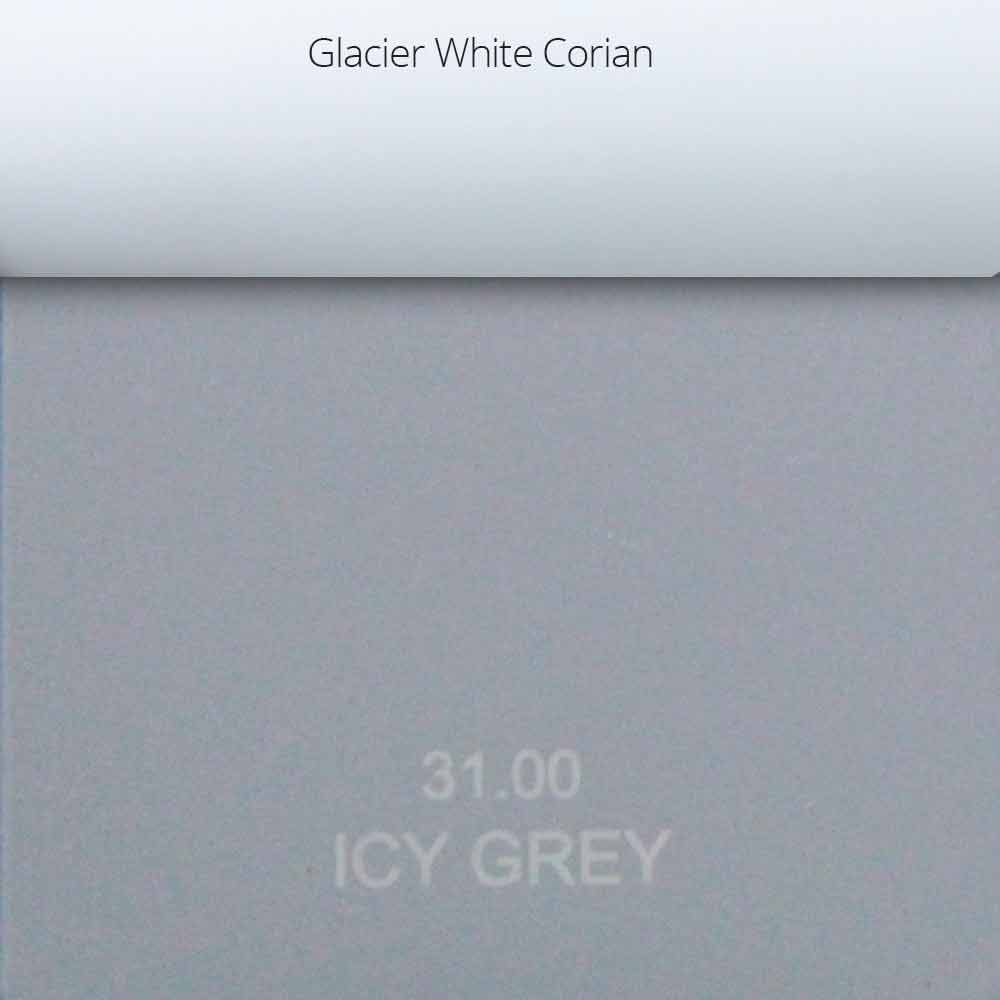 - Icy Gray + Glacier White Corian®: matt cold light gray finish with white DuPont ⢠Corian® elements;