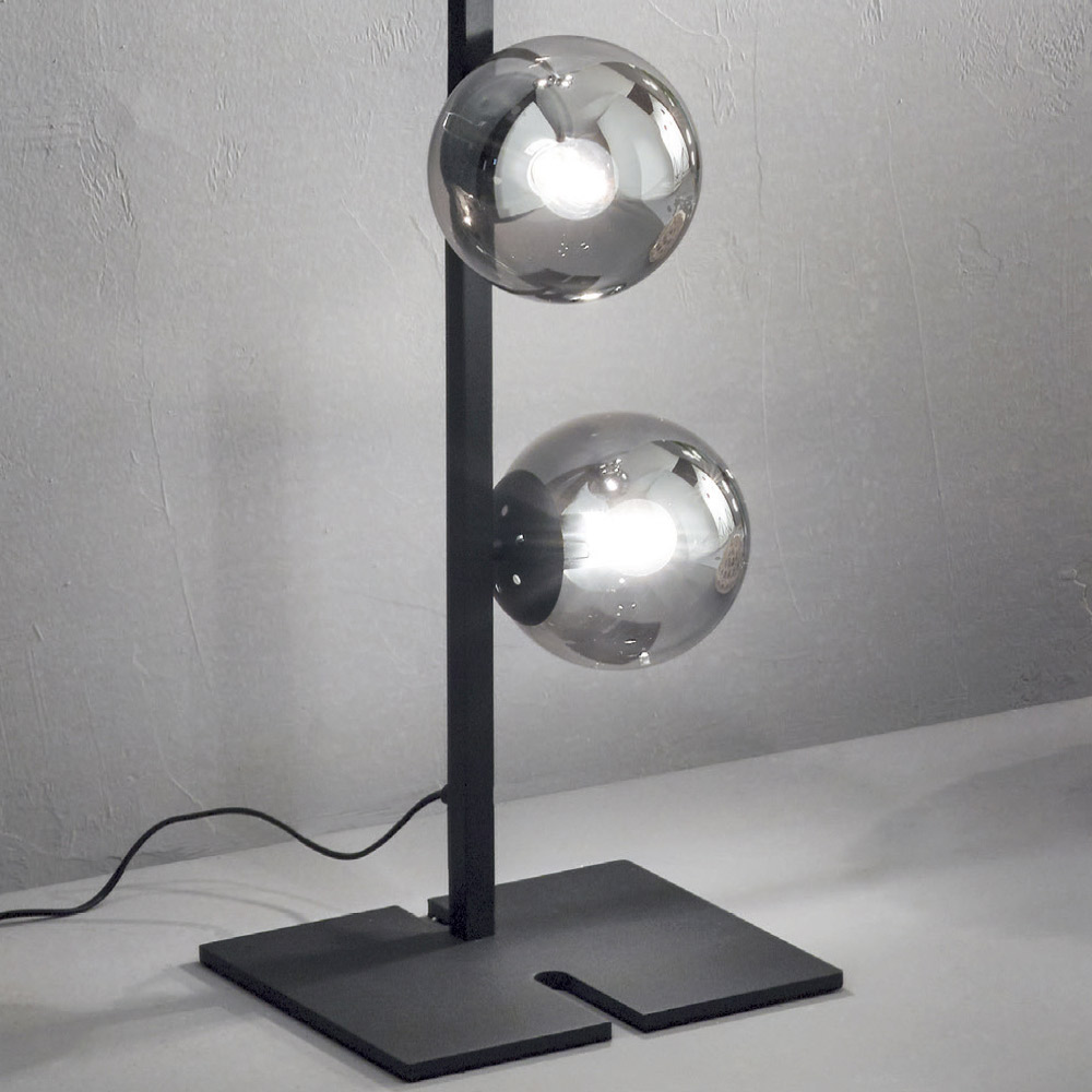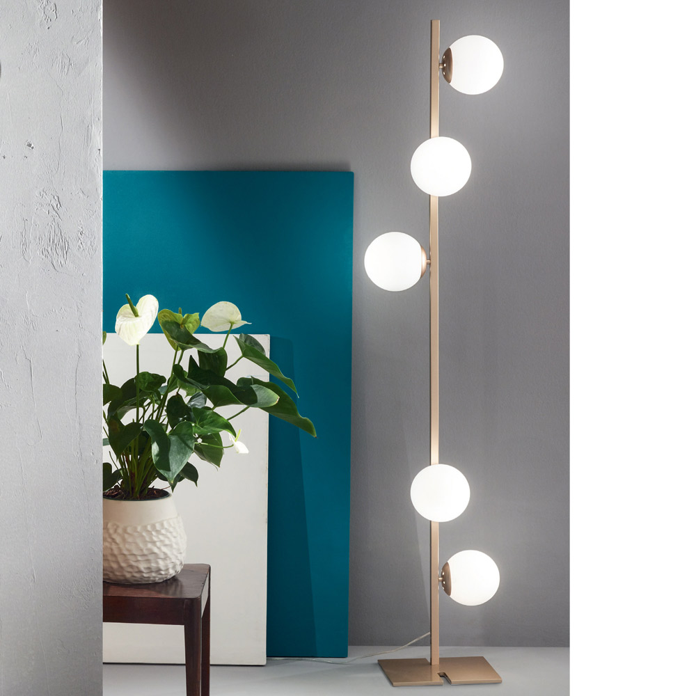 Modern floor lamp with metal structure and spherical