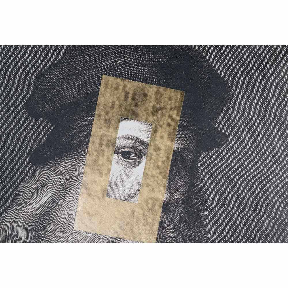 Modern wall painting made in Italy in wood with printed canvas depicting Leonardo da Vinci and enriched with a rectangular decoration in gold leaf . The elegance of the design meets the refinement of the materials to give life to an original complement that can complete the home furnishings in an exclusive way and with a strong modern personality . An extremely original furnishing idea capable of enriching any space in the house with personality and elegance, bringing with it all the liveliness of creative prints and new techniques and proving to be a perfect solution for those looking for a creative and eccentric style for the walls of their home.