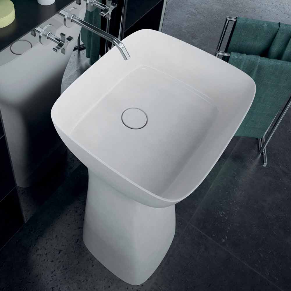 Firmino is a wonderful freestanding pottery sink made in Italy with extremely thin edges and with rigorous forms, which are perfect to furnish your bathroom with design and functionality.