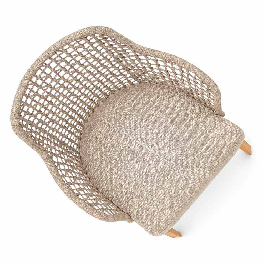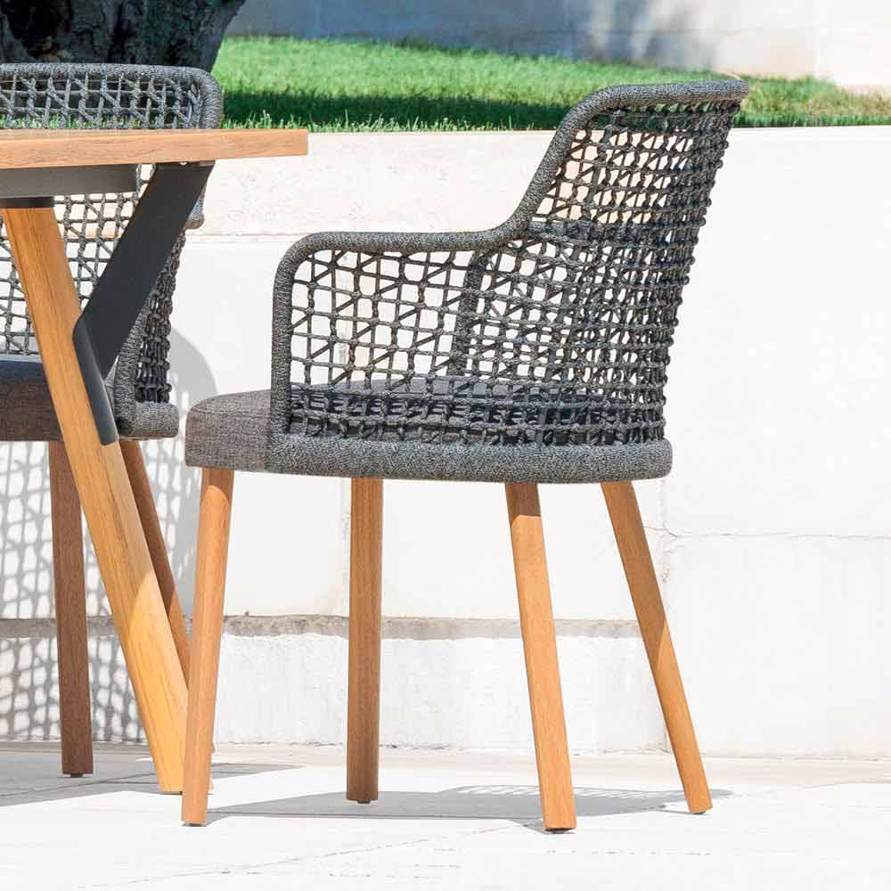 Emma is a garden armchair characterized by a hand-woven synthetic fiber structure with beige or dark gray powder-coated aluminum frame.