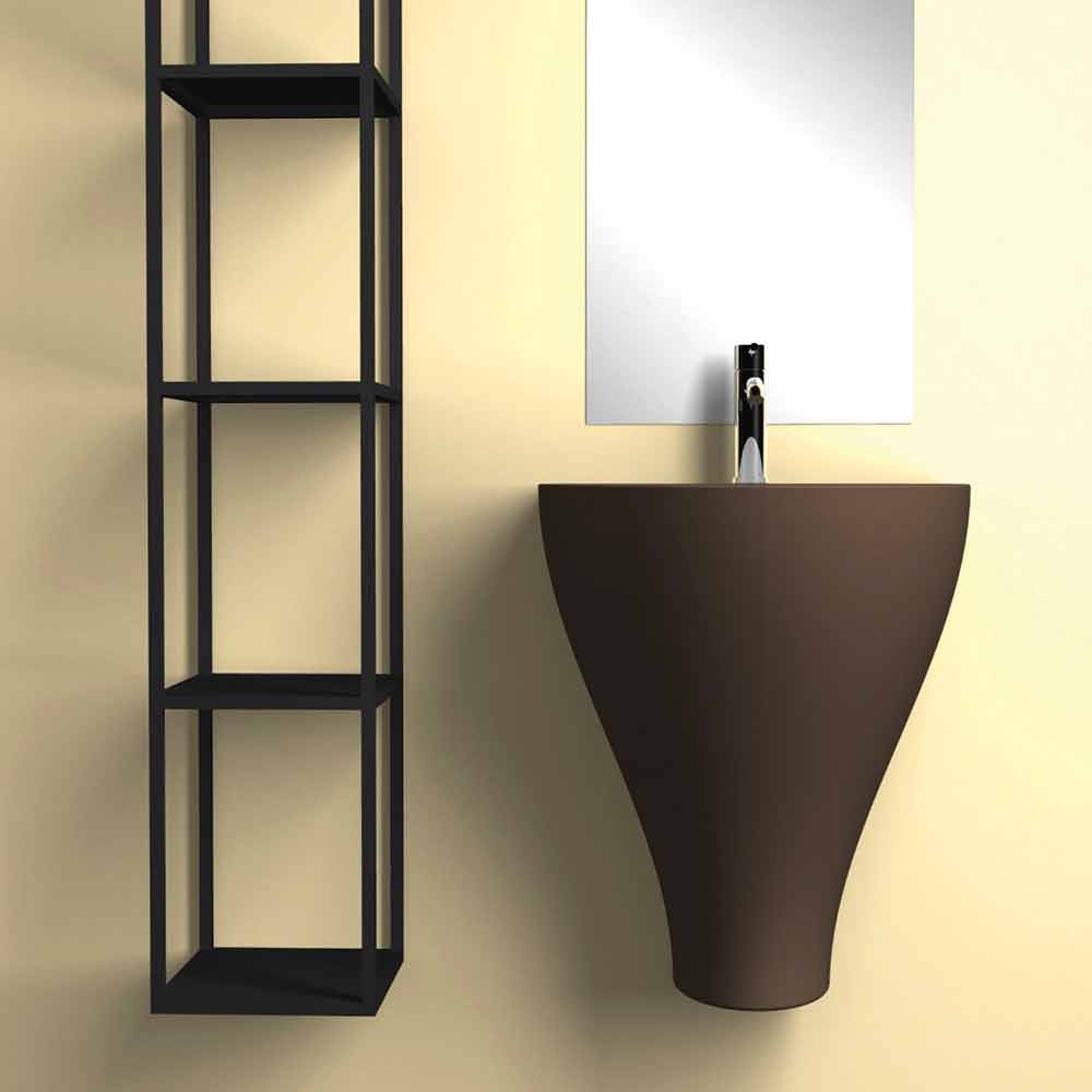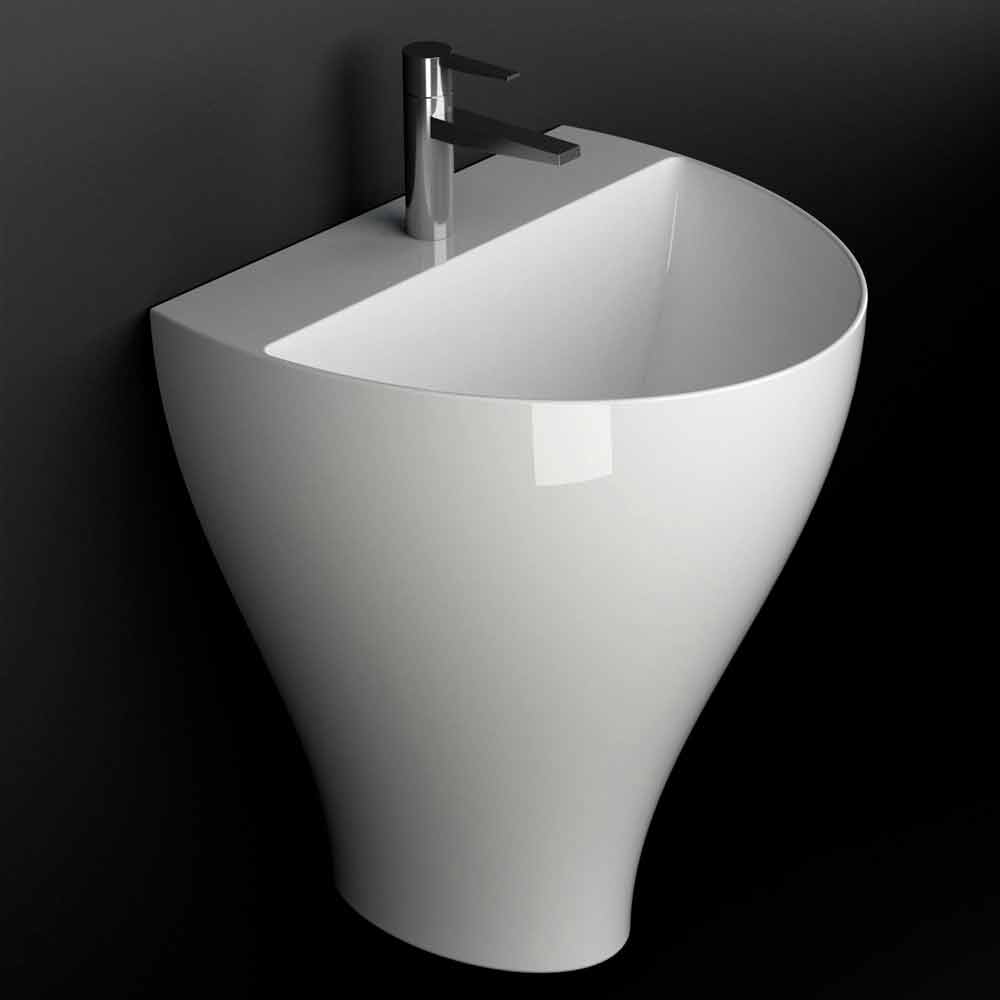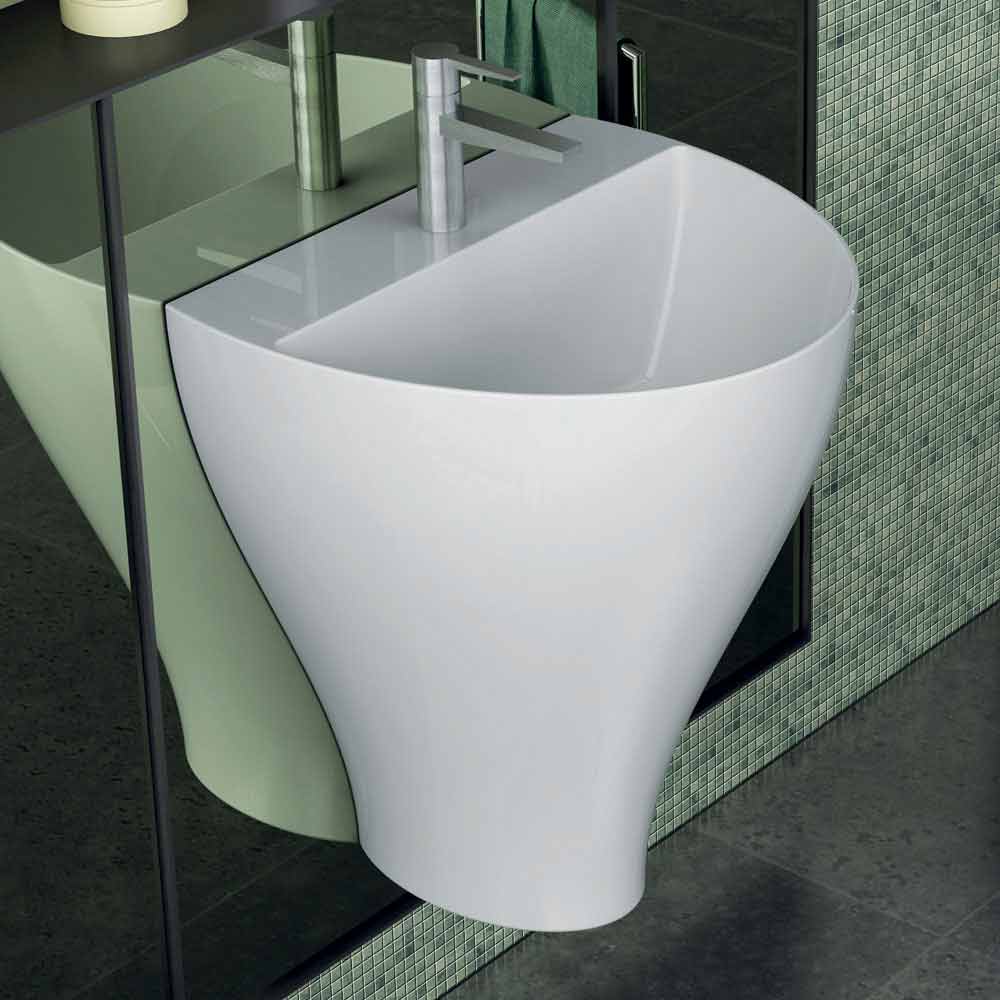 Modern hanging bathroom sink in pottery made in Italy, Fiorello