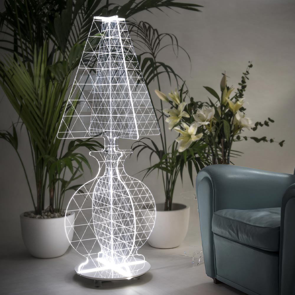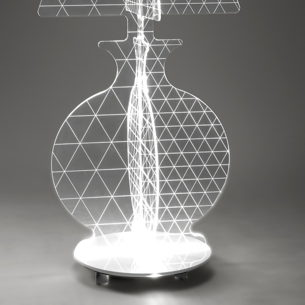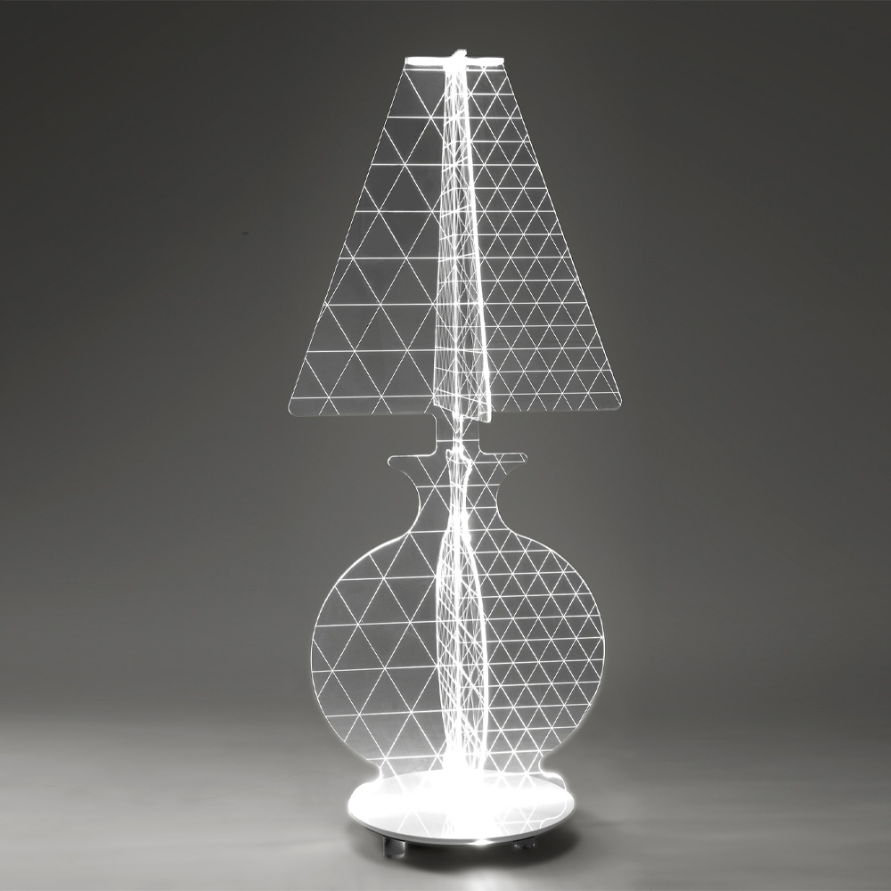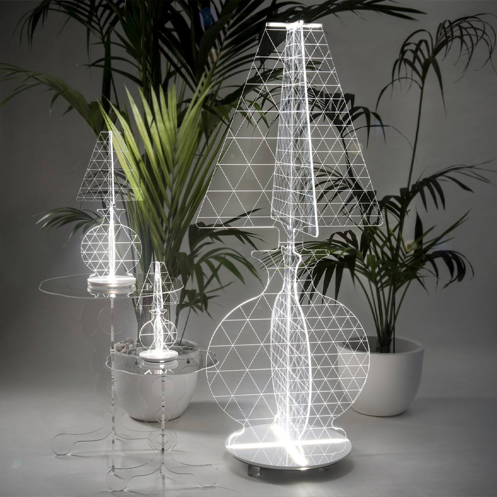 Laser-marked plexiglass table lamp, 3 sizes made in Italy.