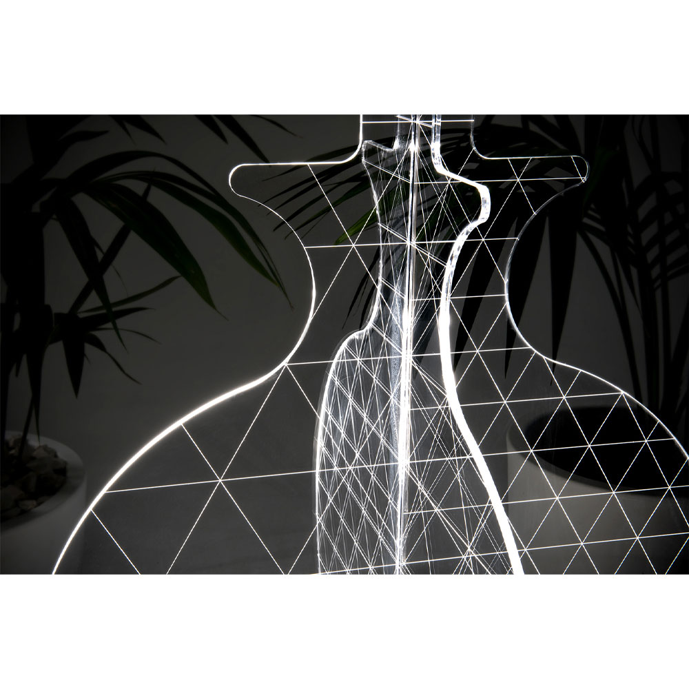 Made of 100% virgin polymer plexiglass, thanks to its technical characteristics the acrylic crystal lights up, enhancing the shape of the product.
