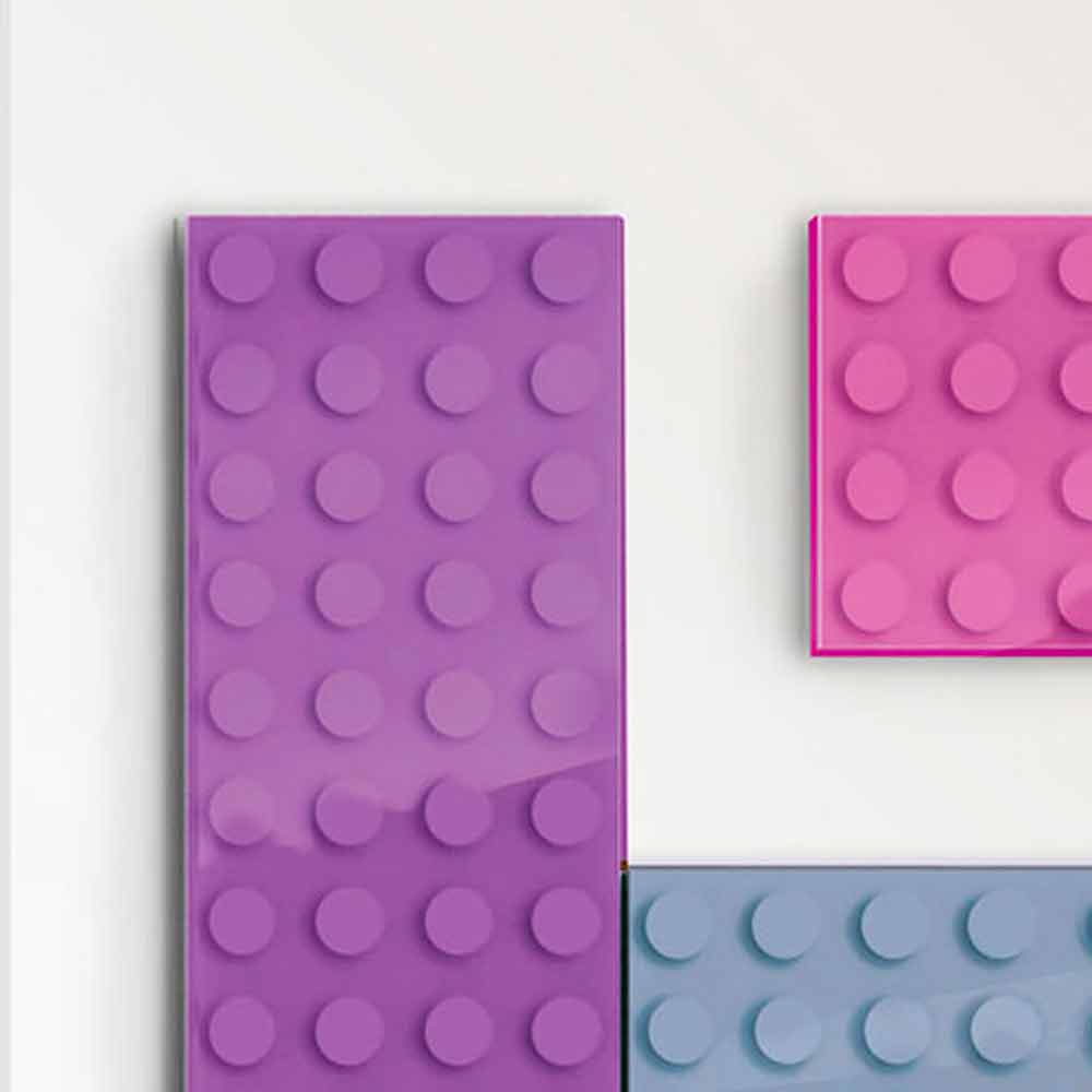 Brick electric radiator, Lego design, made in Italy by Scirocco H A collection of colorful, modern, and fun electric radiators. A project inspired by a beloved icon shared by all. Multiple color combinations for modular, horizontal and vertical elements. Like a building block, the elements combine and fit together depending on the available space and the required thermal output.