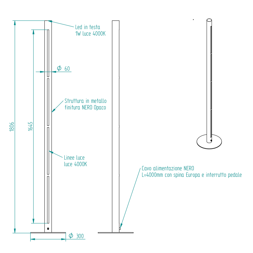 Metal floor lamp with double vertical lighting, modern design Made in Italy.