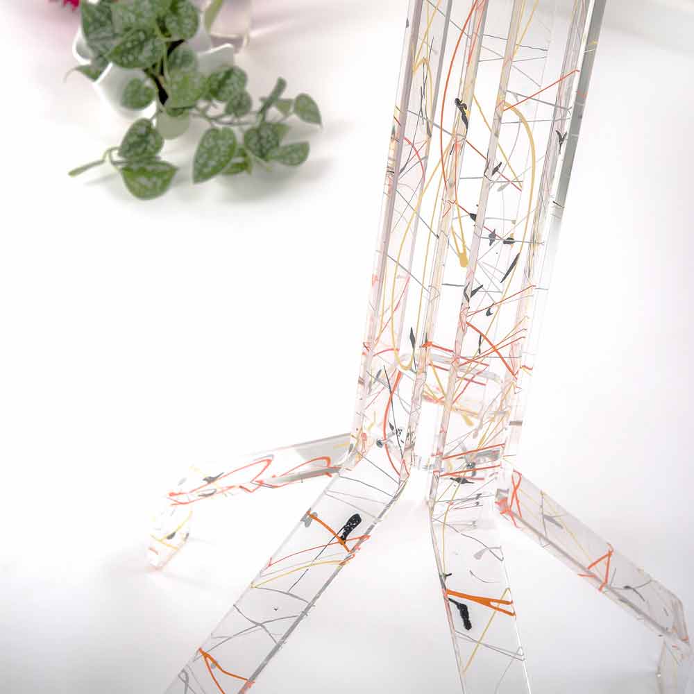 Andrea is a 5-arm asymmetrical coat hanger, made of 100% virgin polymer PMMA plexiglass with spray paint finishes making it multicolor.