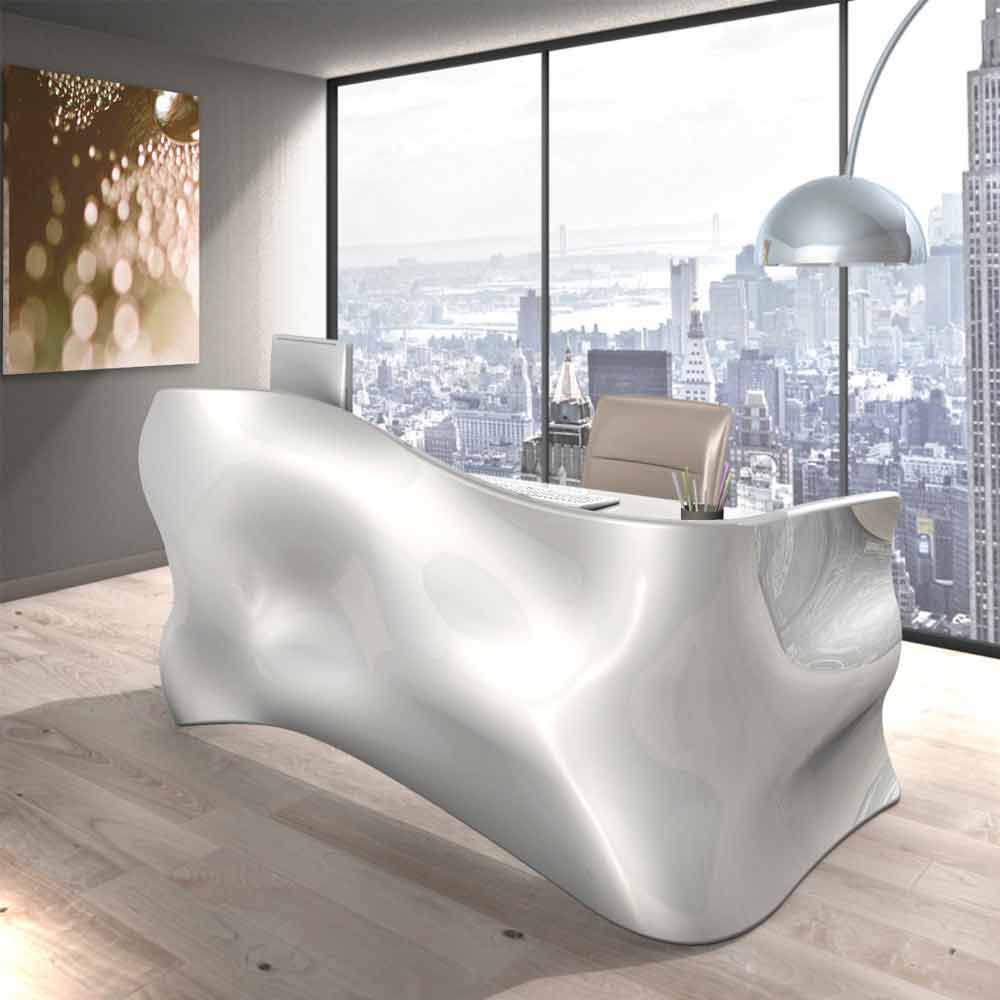 The "Velo" desk was designed to combine functionality and strong aesthetic impact. It is characterized by a design with organic and sinuous lines, almost like a soft veil, which folds and envelops the surrounding space. Its sculptural shape is such that it can be inserted both in modern and minimal environments and in luxurious rooms of the highest level. Desk characterized by Solid Surface, available in three color variants: White (RAL9003), Black (RAL9005), Dove Gray (RAL1019), choose the one best suited to you!