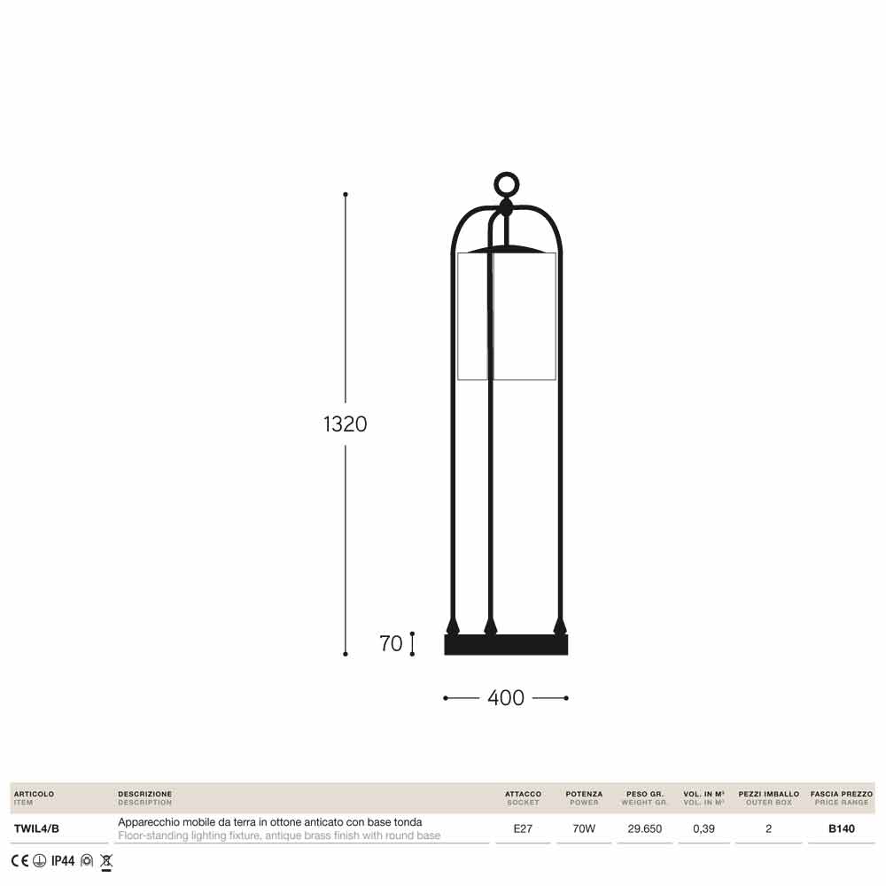Modern outdoor floor lamp Pitosforo by Aldo Bernardi, made of brass and methacrylate.