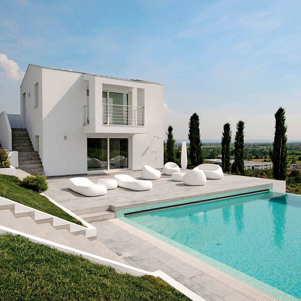 polyethylene, available in the opaque version characterized by excellent resistance to the sun, shocks and heat or in the resistant and bright lacquered version that allows you to create play of light and reflections. Thanks to its unique and innovative design, it manages to combine functionality and practicality without neglecting the visual and design aspect.