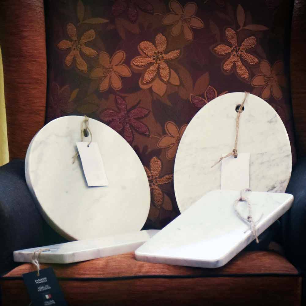 This cutting board is characterized by a simple and elegant design that makes it perfect to use in kitchens with a refined and minimal taste and to bring to the table to recreate a sophisticated atmosphere. What distinguishes this product is the precious white Carrara marble with which it is made, composed of a homogeneous white background with fine-grained gray veins and also has a practical hole for hanging it and optimizing spaces. The cutting board is also handmade in Italy , first worked and then polished by skilled craftsmen in the sector who ensure a well-finished and finished final product thanks to the high quality materials and techniques used.