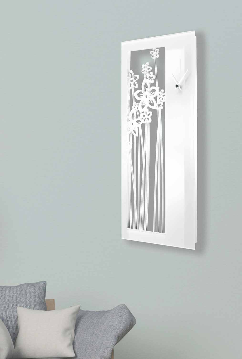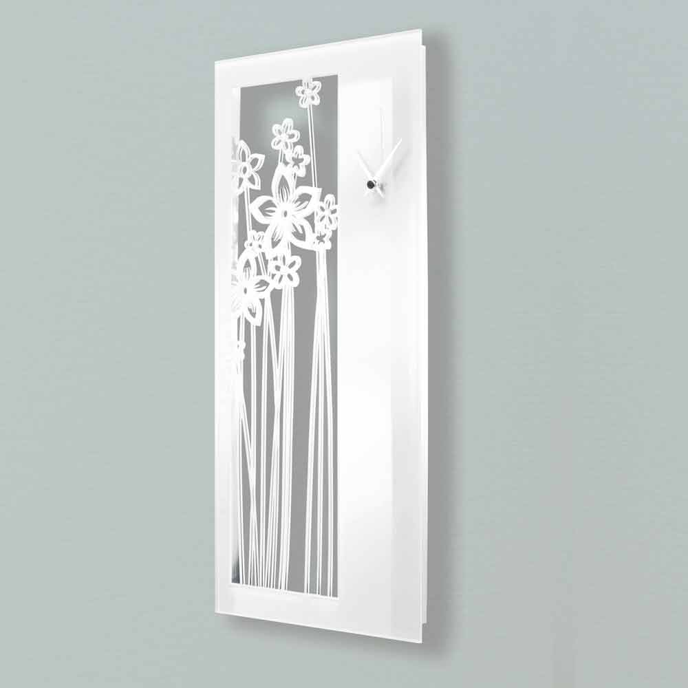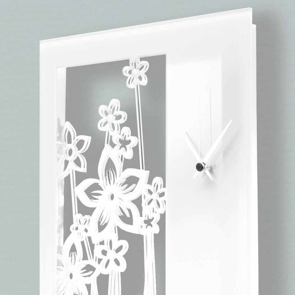 Large wall clock with a rectangular and modern design in white plexiglass, made in Italy.
