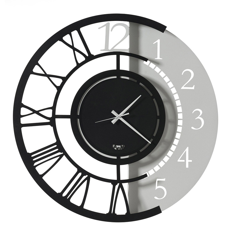Round design iron wall clock with double numbering in 2 sizes and 3 finishes made in Italy.