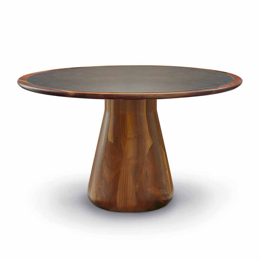 Fixed round table with solid natural walnut top, Carlo