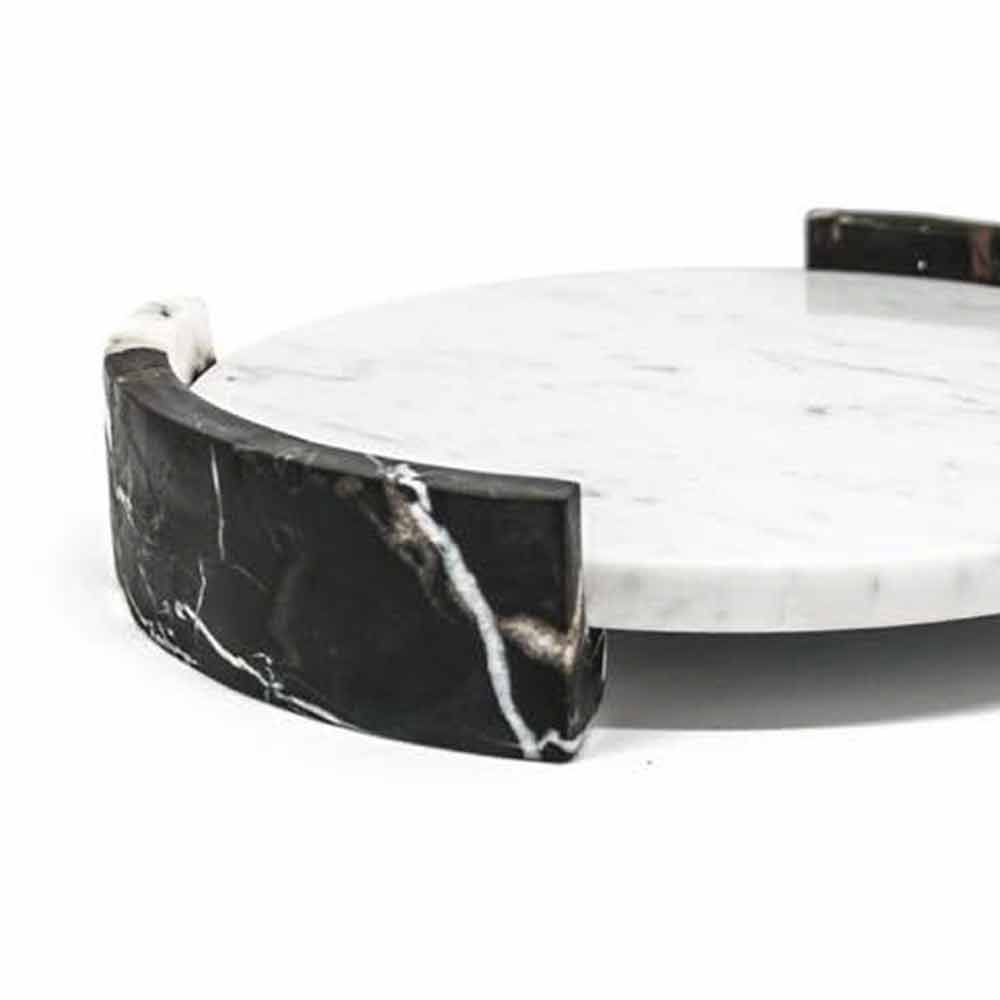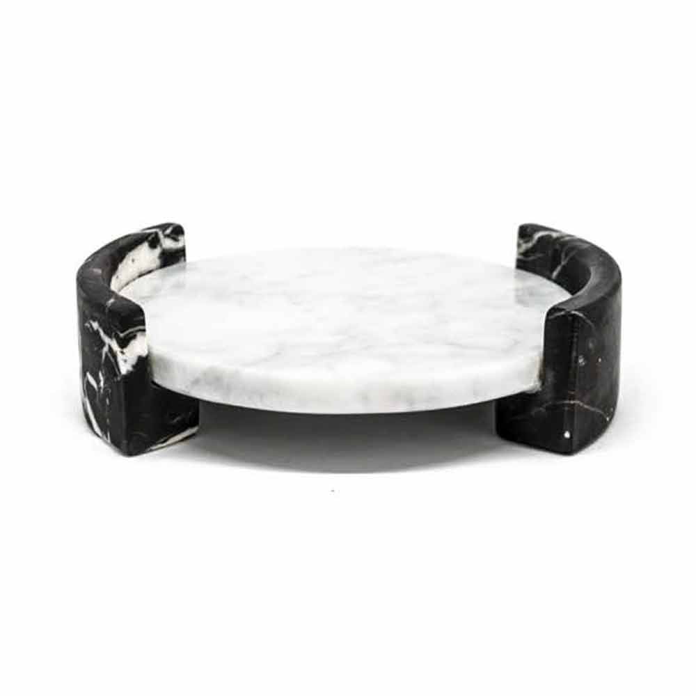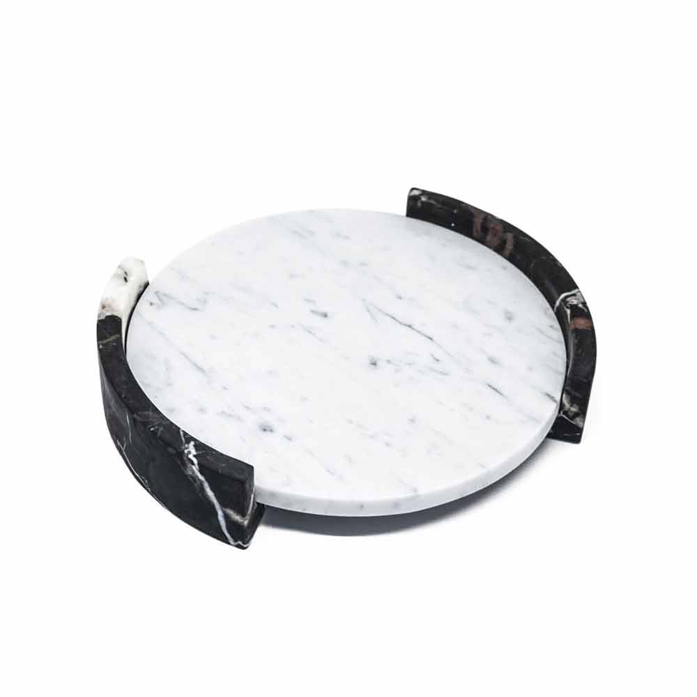 Round design tray made of high quality white Carrara marble Made in Italy.