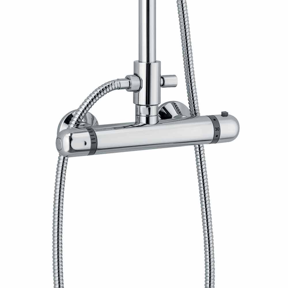 Shower column in chromed brass with thermostatic mixer complete with accessories in stainless steel and ABS .