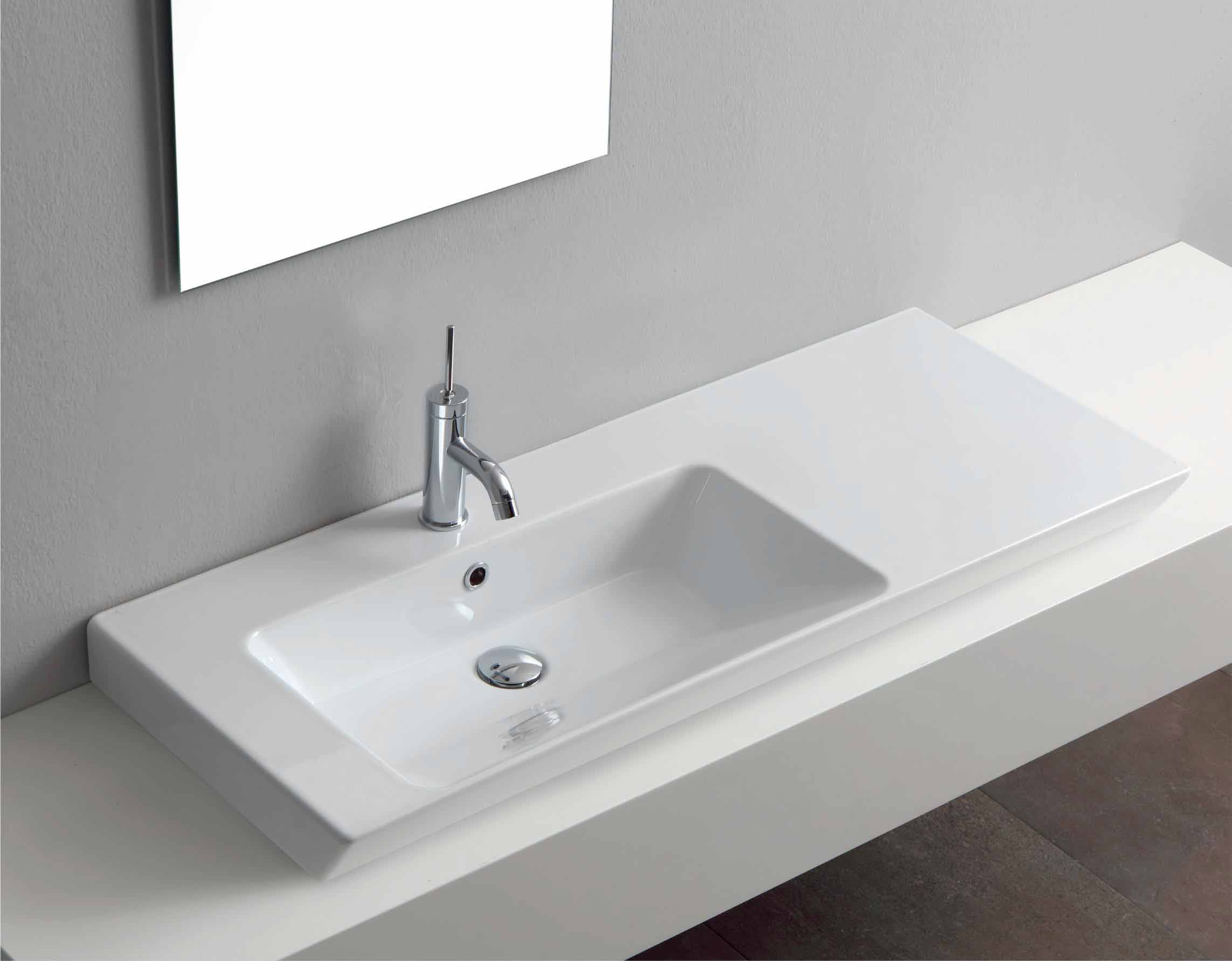 The countertop and wall insert sink is characterized by a modern and simple design, able to adapt to any kind of space and furniture. The decorative aspect is perfectly combined to the functionality which is an essential feature for the bathroom. The use of vitreous china, particular kind of glazed ceramic cooked at 1200°, allows to use this sink without fear of ruining the surface. It is a material resistant to acid, heat, bumps and scratches and it does not fade overtime. It is also hygenic and easy to clean.