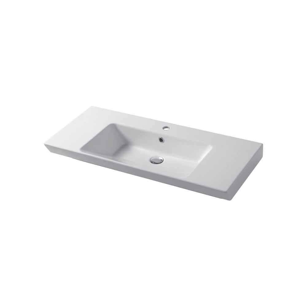 The countertop and wall insert sink is characterized by a modern and simple design, able to adapt to any kind of space and furniture. The decorative aspect is perfectly combined to the functionality which is an essential feature for the bathroom. The use of vitreous china, particular kind of glazed ceramic cooked at 1200°, allows to use this sink without fear of ruining the surface. It is a material resistant to acid, heat, bumps and scratches and it does not fade overtime. It is also hygenic and easy to clean.