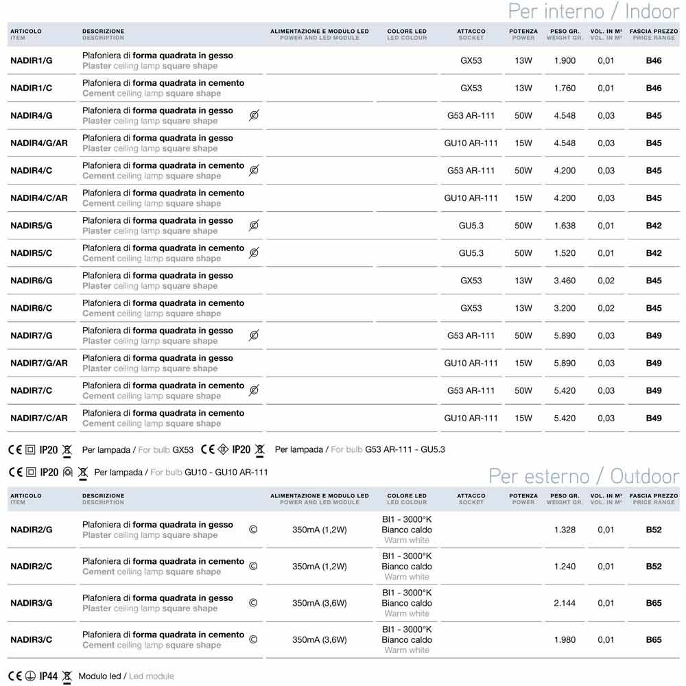 Modern square shape outdoor LED ceiling light Nadir 2 by Aldo Bernardi, available in concrete or plaster version.