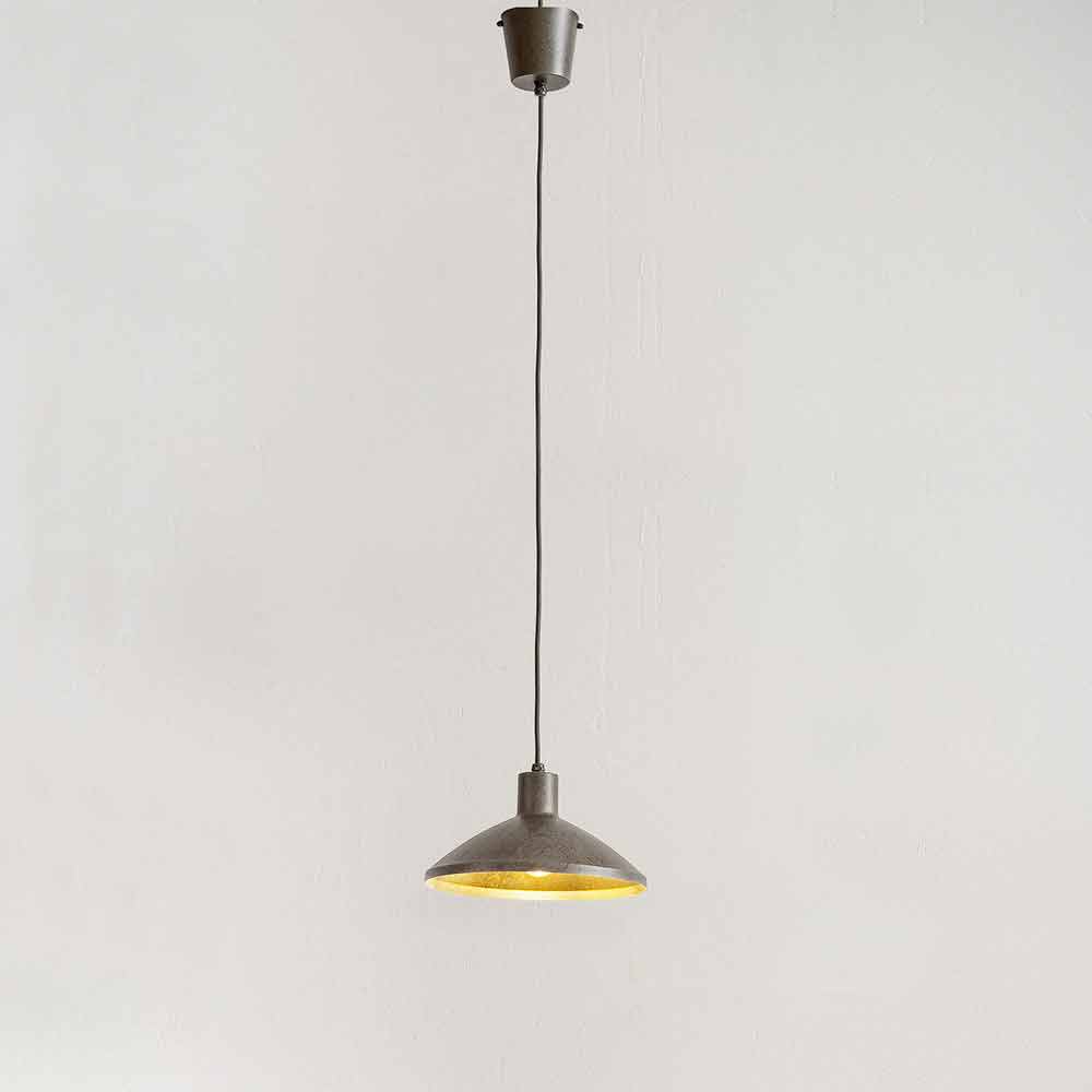 Design pendant lamp in antiqued steel Materia by Aldo Bernardi, made in Italy.