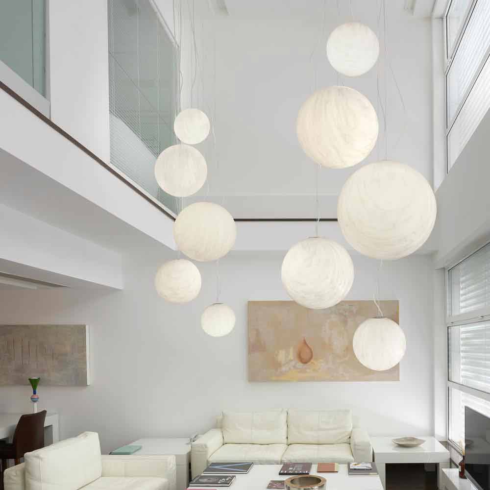 Mineral is a suspension lamp perfect for indoor furnishings. With a spherical shape and an irresistible made in Italy design, this lamp uniformly illuminates your room, becoming the protagonist thanks to its marble effect with which it is made.