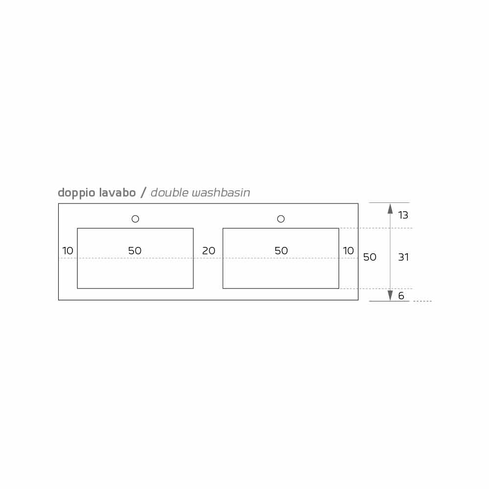 Rufina is an integrated system composed of a material top that houses two washbasins; its peculiarity is that it can be installed on any type of base or be left in the suspended version.
