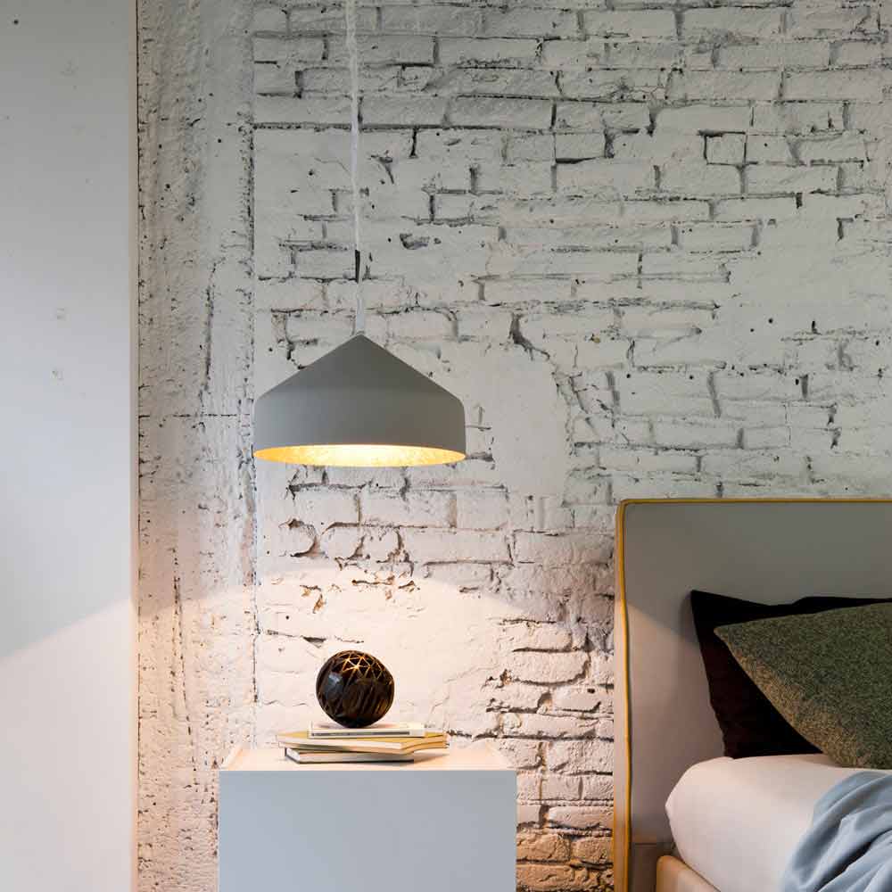 The Cyrcus Cemento suspended lamp defines all environments creating a moving and scenographic atmosphere.