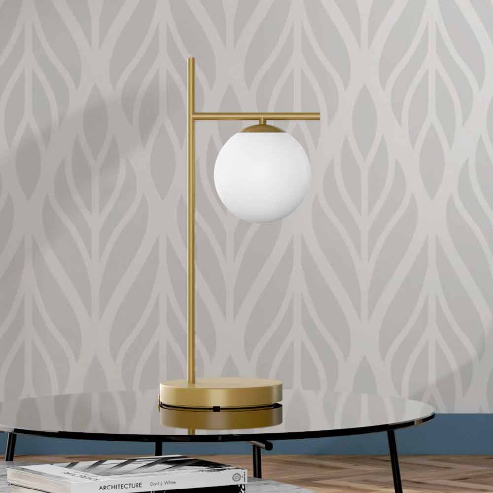 Entirely made in Italy , this table lamp consists of a brass finish metal structure enriched and completed by an elegant white opal glass sphere inside which the bulb will be positioned. The use of simple and essential lines combined with spherical shapes allows to create a design characterized by harmony and sinuosity , elements capable of giving elegance and a refined touch to the environment.