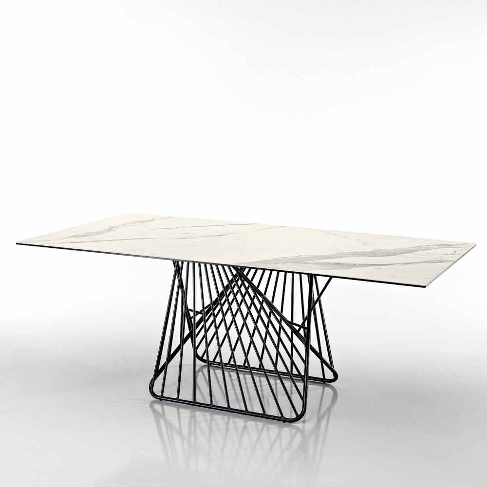 Modern table with glass-ceramic surface made in Italy, Mitia