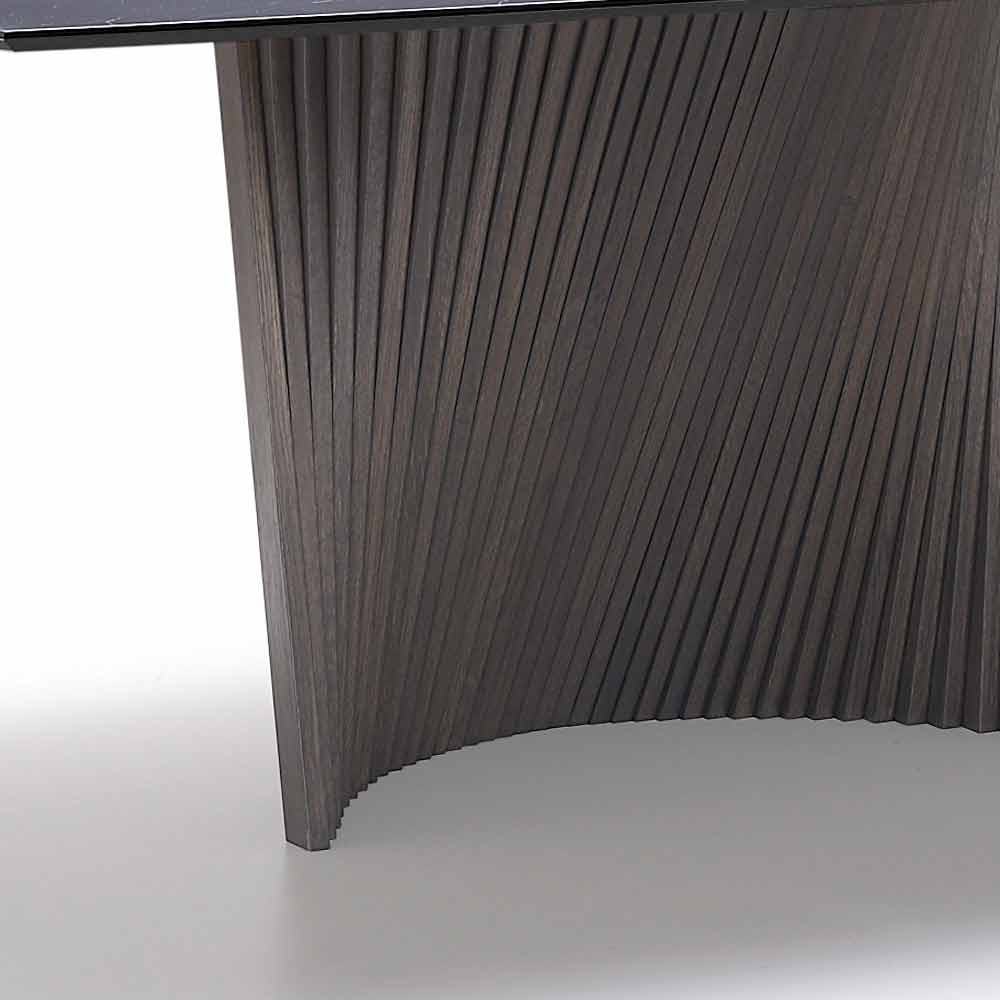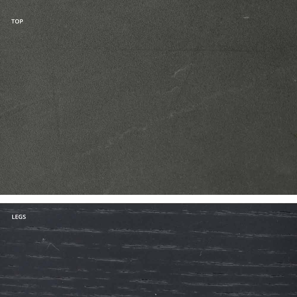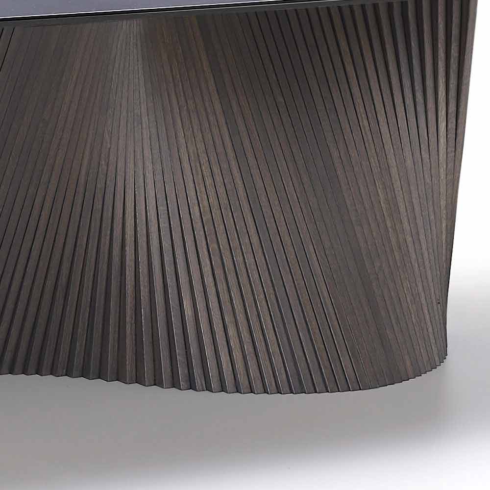 - base made up of over 70 hand-oiled black gray ash strips and semi-barrel-shaped top in stoneware with matt pulpis marble effect;