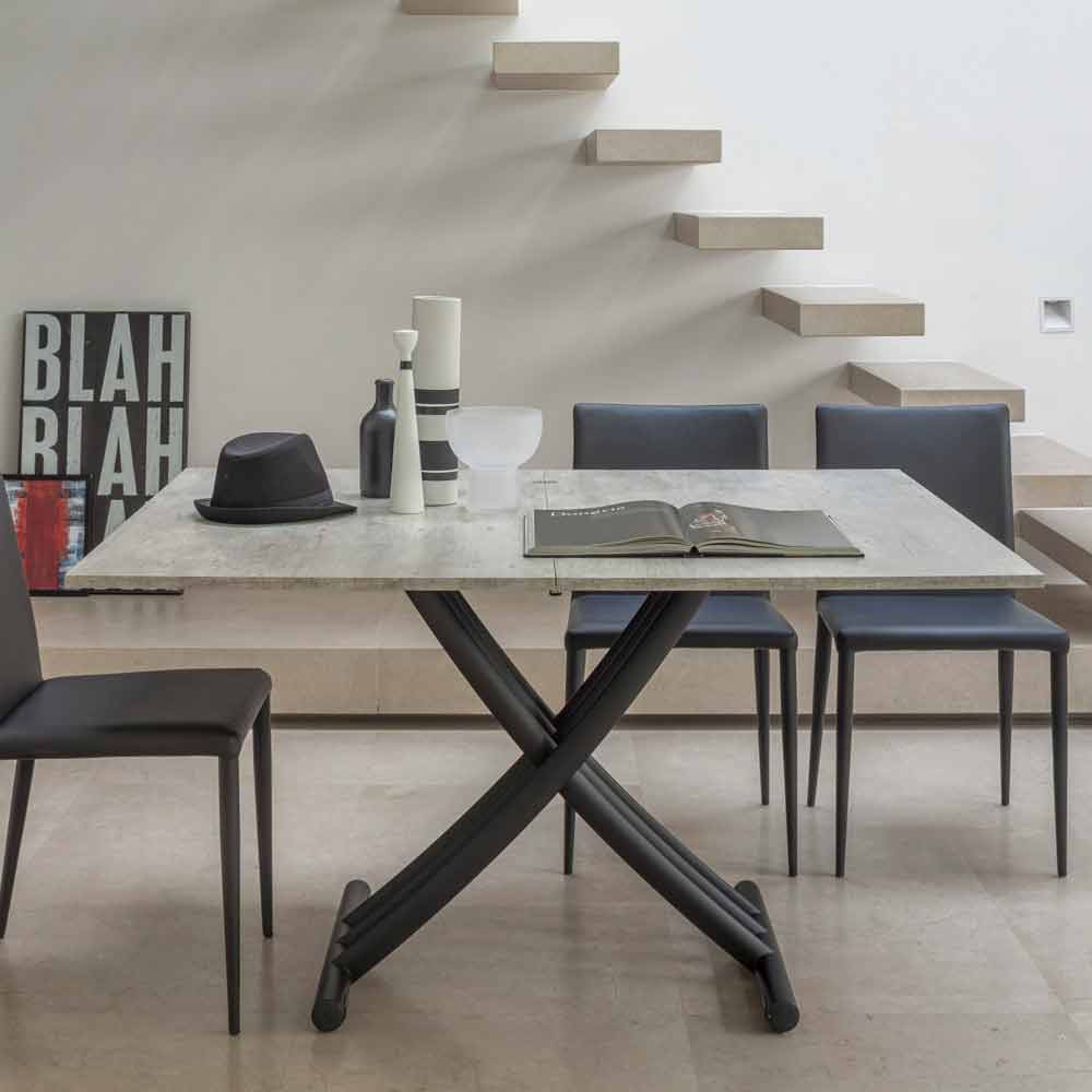 Coffee table convertible into a dining table in metal and wooden top made in Italy.