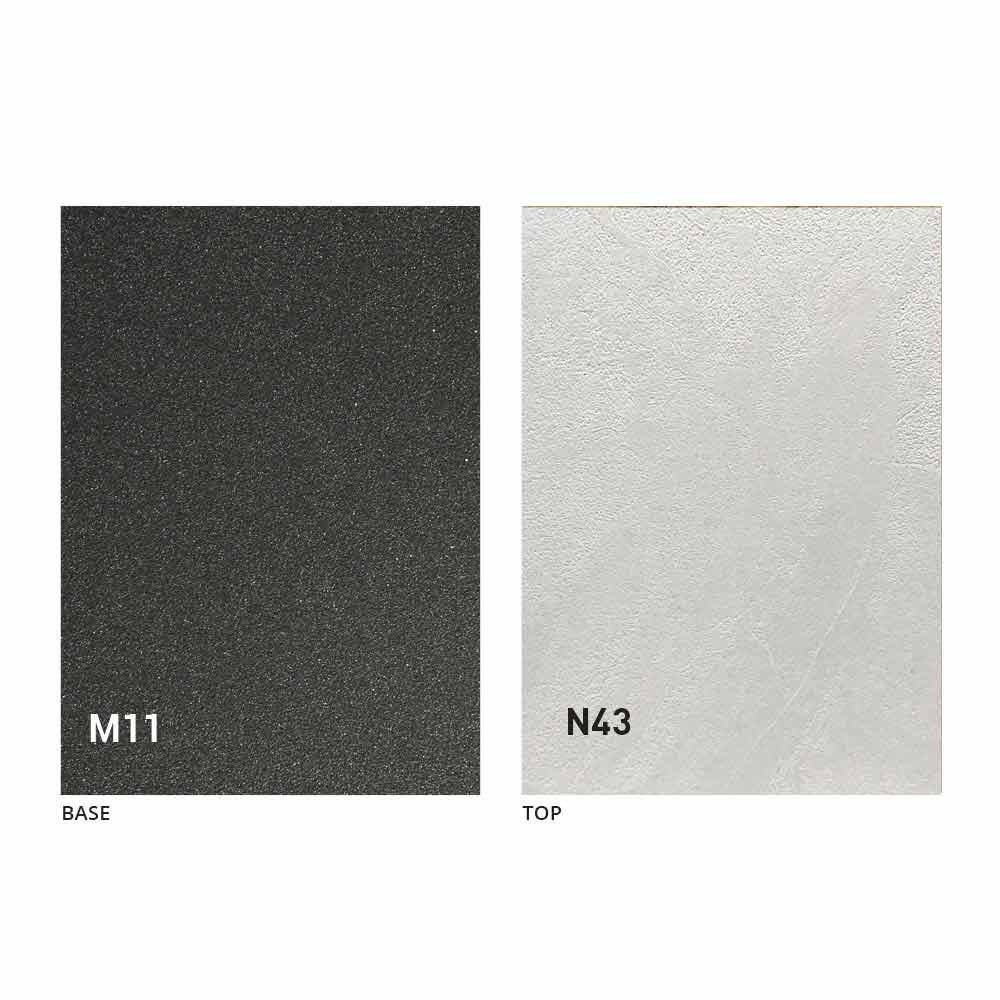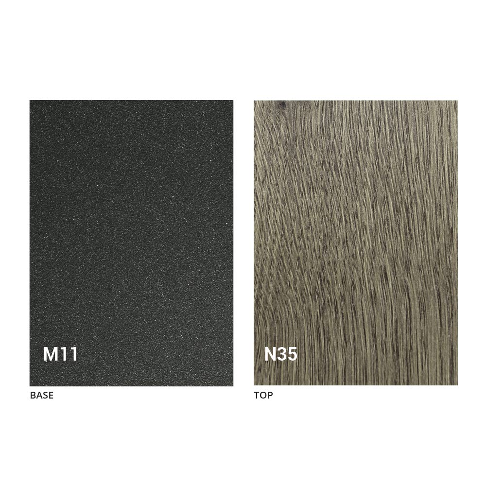 The table top and base can be customized with different materials and sample finishes or RAL lacquers. For information contact us using the "