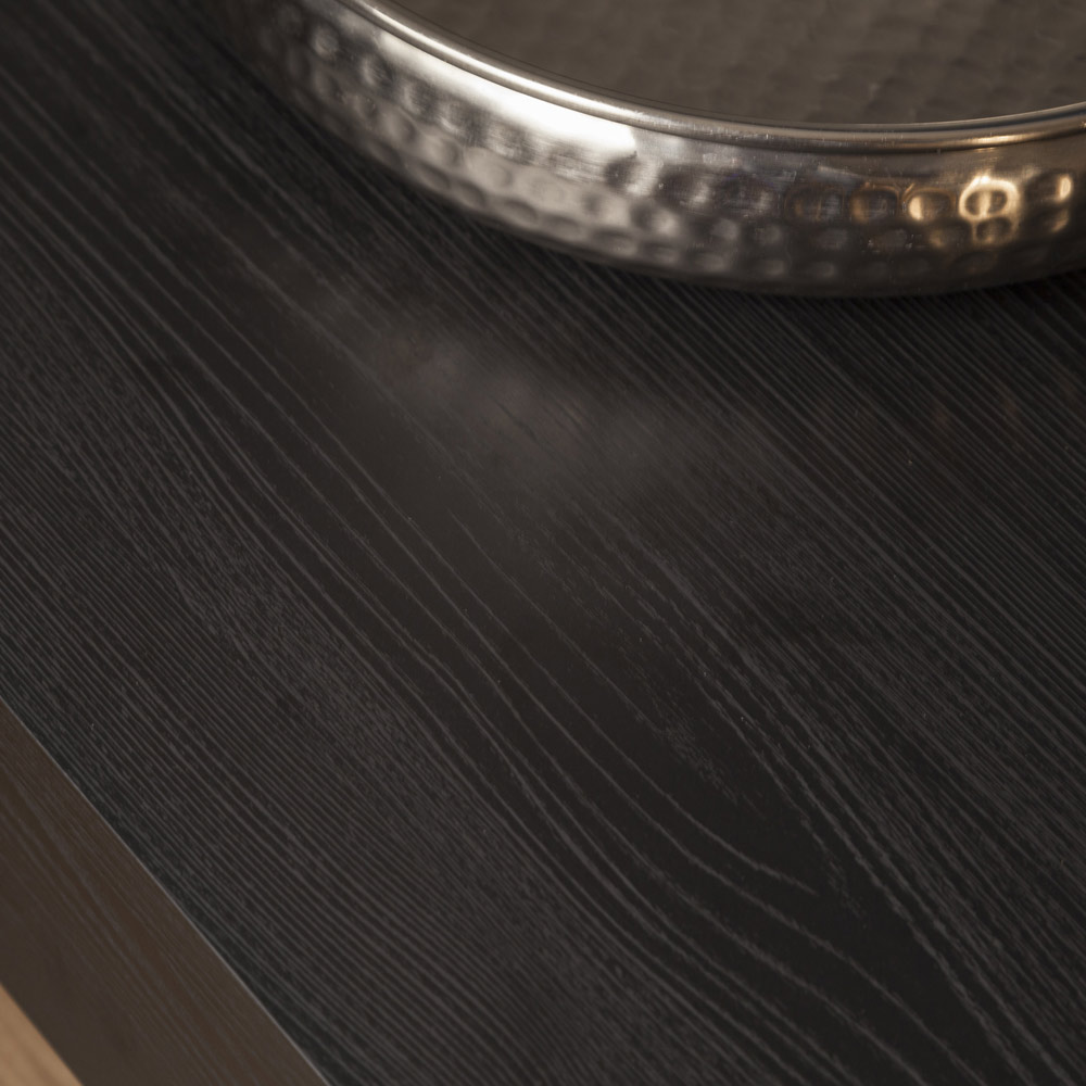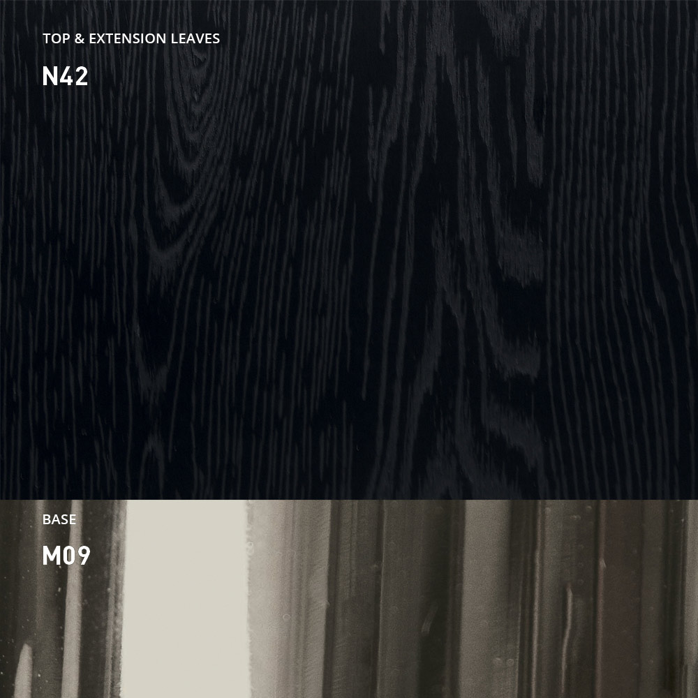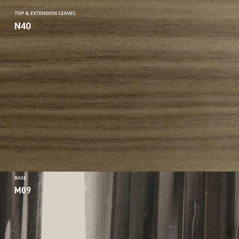 The top is available in a wide range of finishes in melamine, lacquered, veneered and mortar effect.