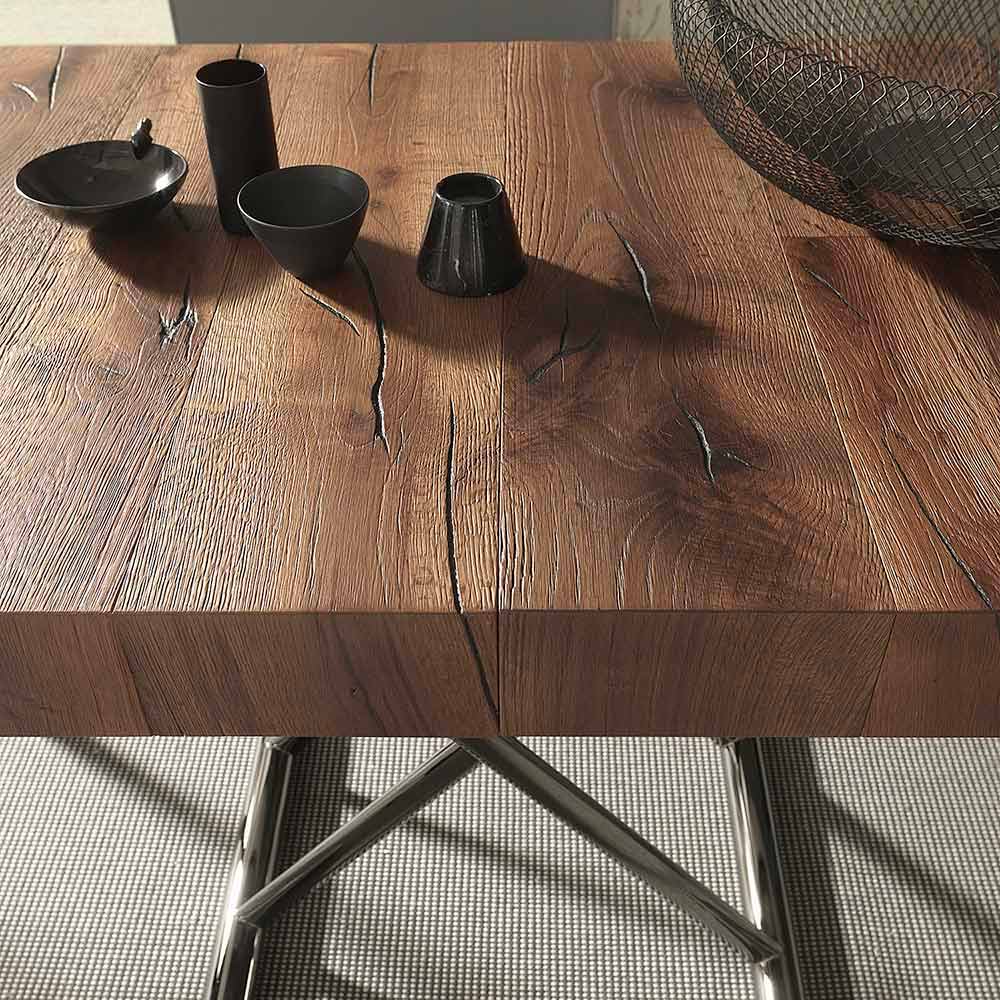 functional space-saving dining table, perfect for optimizing the spaces inside dining rooms or living rooms with small dimensions. This is possible thanks to the 2 internal extensions of 50 cm each and the gas mechanism that allows you to adjust the lift from 27 to 80 cm, giving life to a unique item with a strong personality.