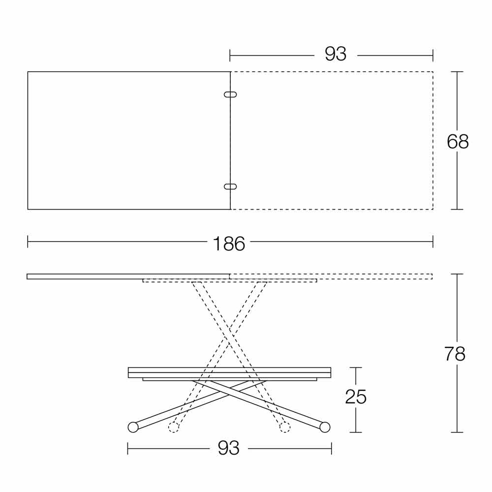 The table is closed like a book and can be doubled in length up to 186 cm.