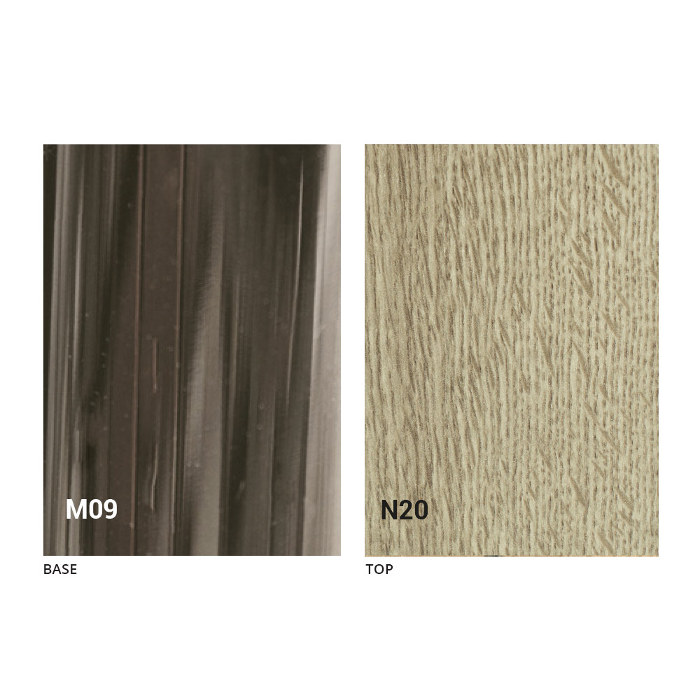The table top and base can be customized with different sample finishes. For information contact us using the "