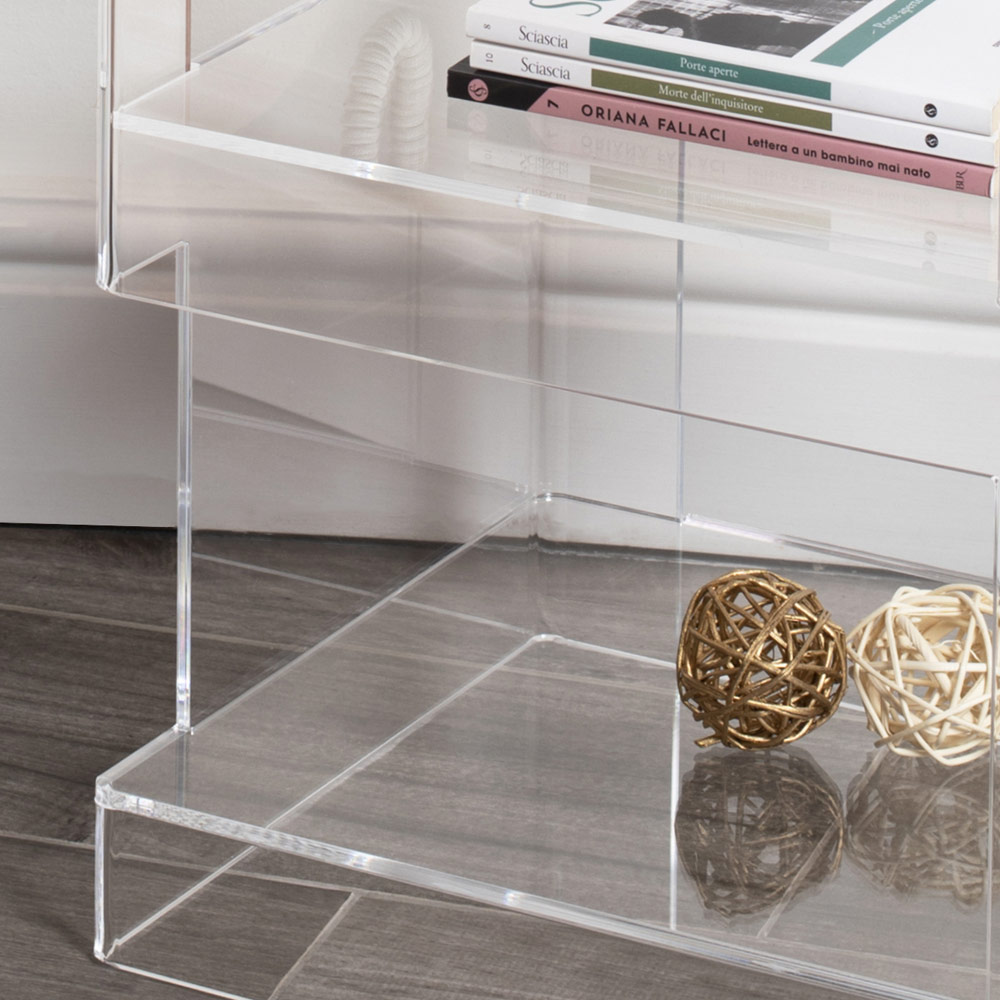 This bedside table for the bedroom it is a piece of furniture entirely made of transparent acrylic crystal with a laser-cut and hand-folded structure with a modern design.