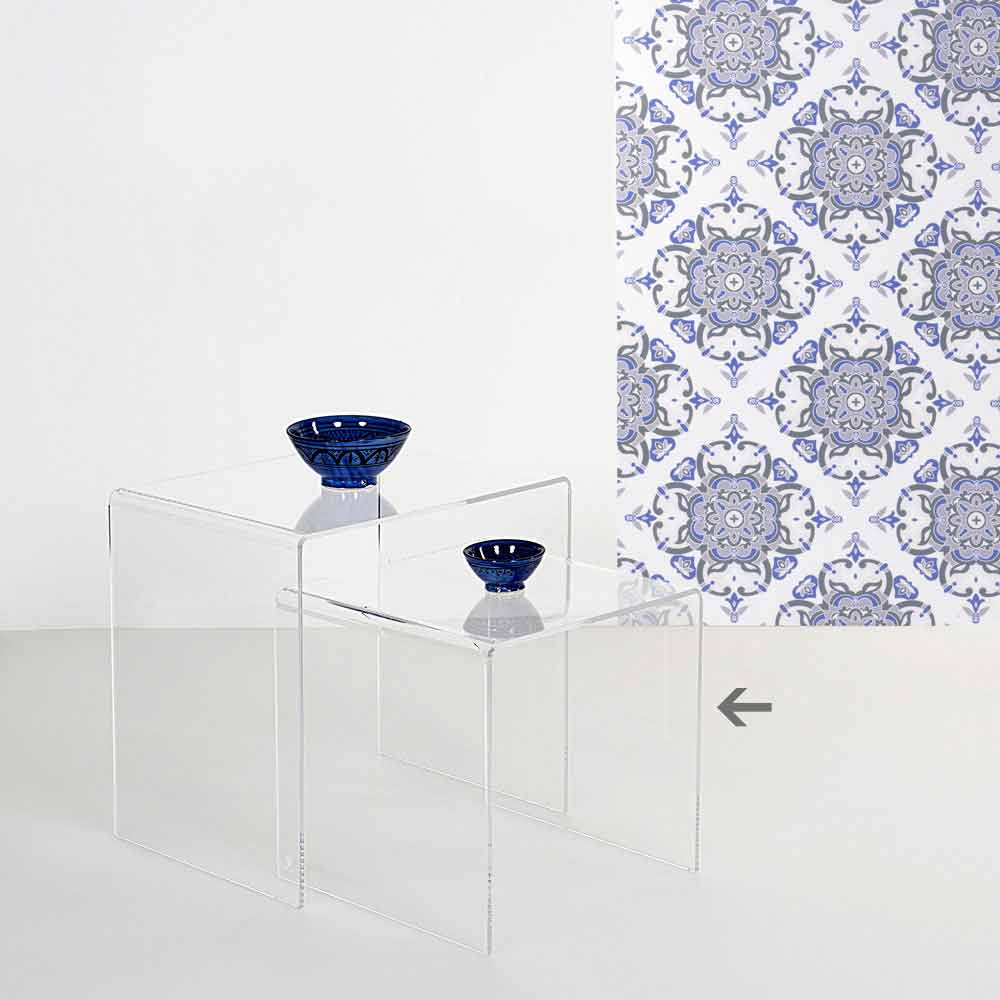 Terry Small is made of 100% PMMA plexiglass from virgin polymers and it can be used both as a coffee table or as a bedside table. Its design is inspired by the geometries of the '80s. Laser cut and bent at high temperatures. Self supporting. It matches the Terry Big side table.