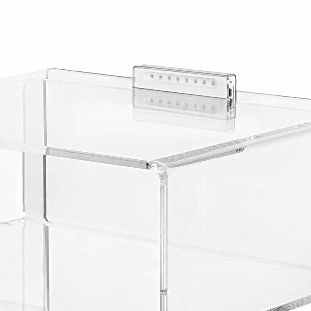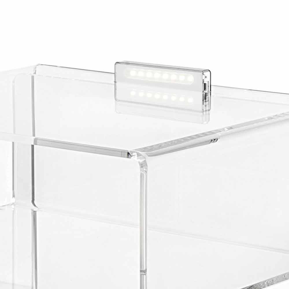 The properties of plexiglass (shockproof, undeformable, unchangeable, thermal insulation) make this item a very versatile piece of furniture. Its luminosity and brightness remain constant and unchanged over time. The PMMA plexiglass from virgin polymers used is non-toxic, hypoallergenic, odourless and anti-bacterial. 100% recyclable, Complies to UNI EN 71-3:200. Designed, developed and manufactured in Italy with Italian materials.